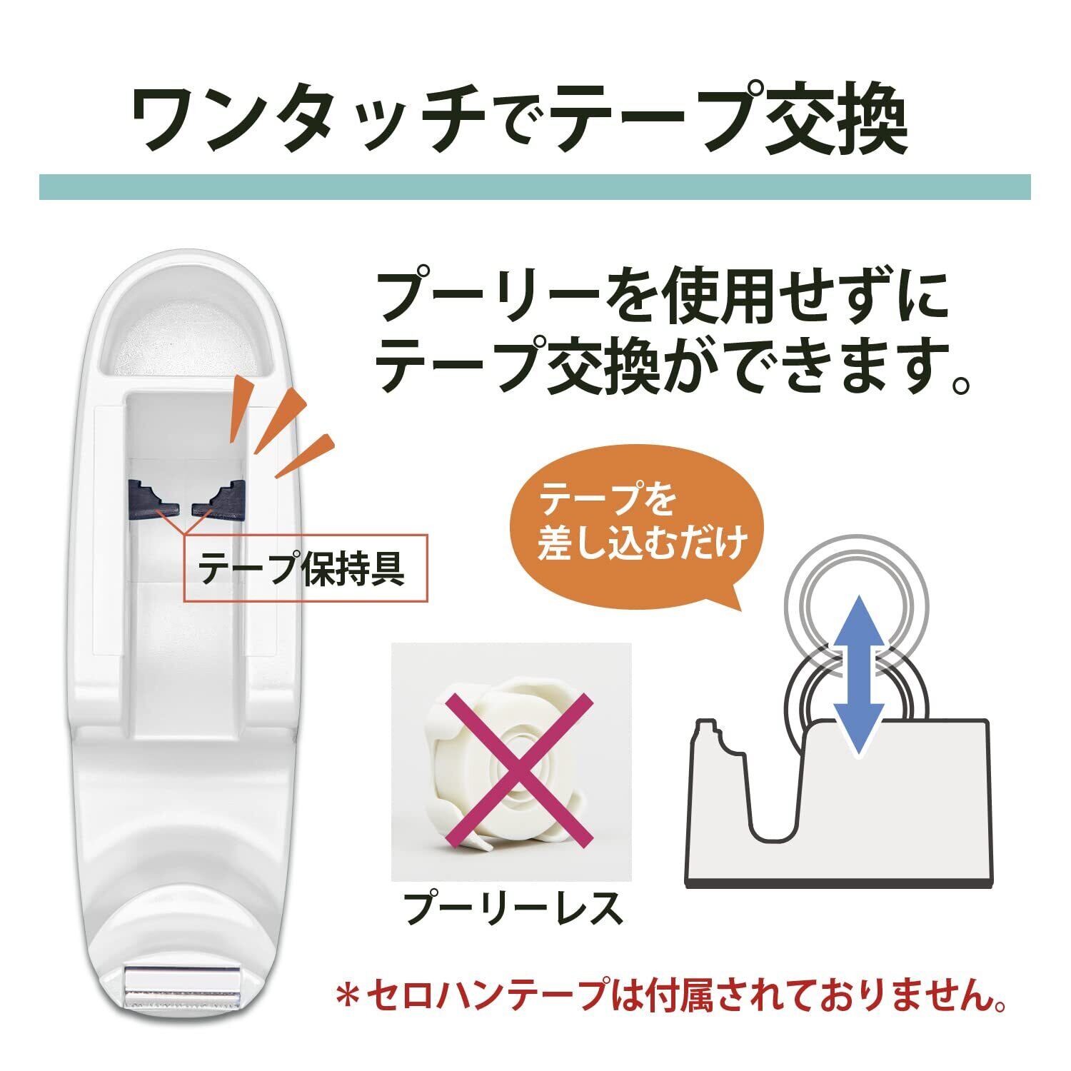 【使用テープ】1型 (インチ) (25mm) 3型 (インチ) (約75mm) 両用 テープ幅 : 24mm、テープ長さ : 70mまで対応可【材質】本体/100%再生PP、底部/100%再生HIPS、テープ保持具/POM グリーン購入法適合製品