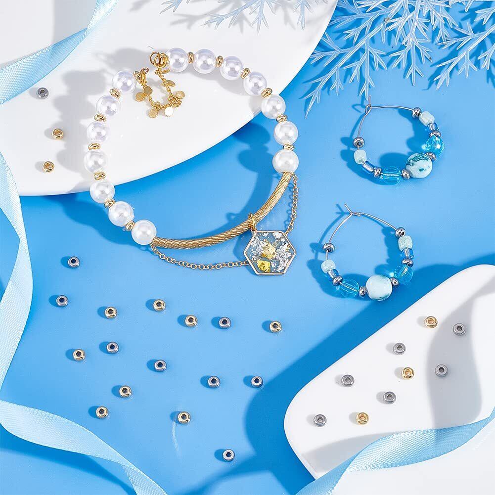 UNICRAFTALE 約100個 2色 4mm 円形 ロンデルビーズ 平型 ステンレス ビーズ フラットラウンドビーズ スペーサービーズ 金属ビーズ メタルビーズ ビーズチャームパーツ ブレスレットネックレス用 アクセサリーパーツ ジュエリー作り クラフト用品 手作り素材 DIY材料 | lcsshop