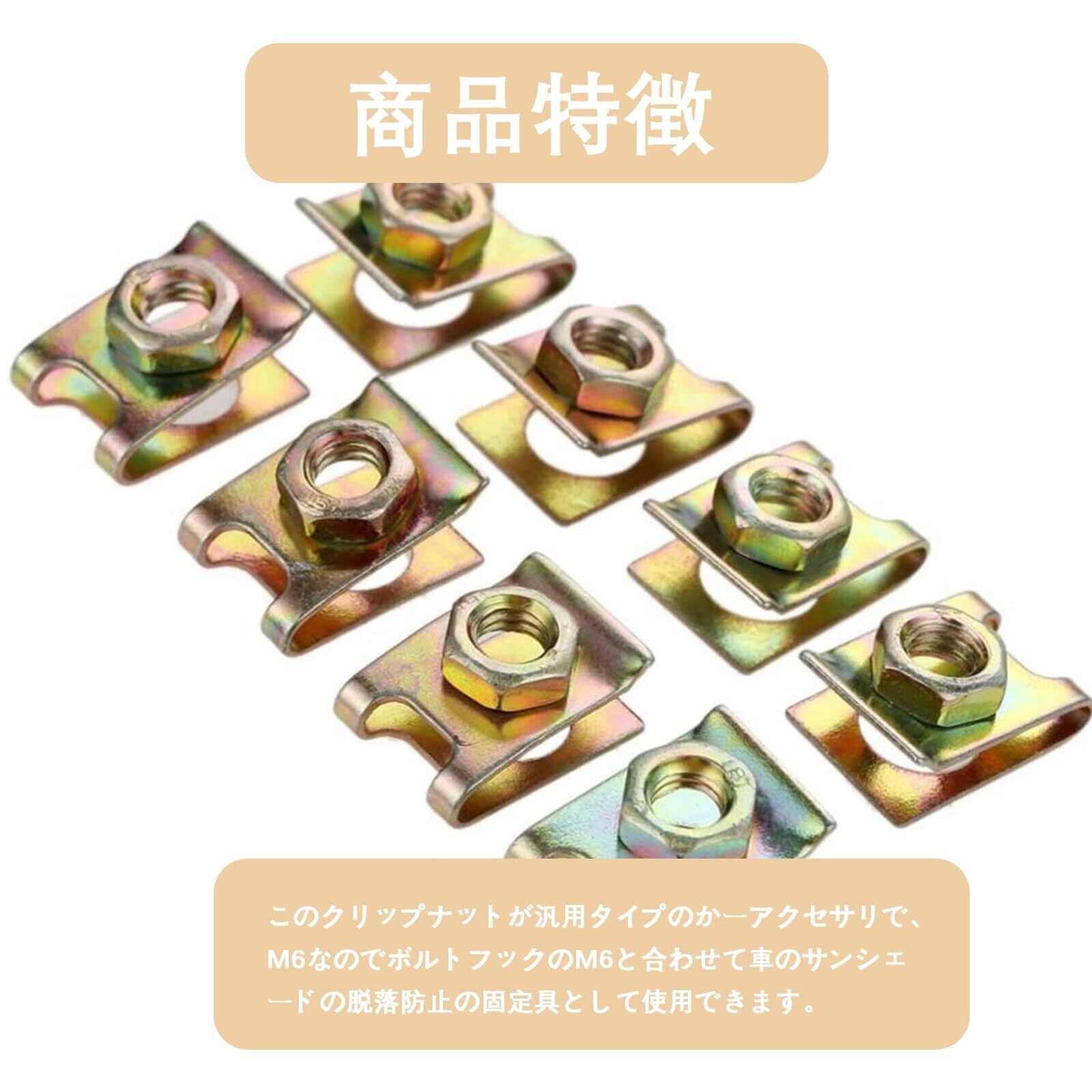 ユニバーサルなM6クリップナット:汎用のカーアクセサリとして使用できます。M6ボルトフックと組み合わせて車のサンシェードの脱落防止具として使えます。