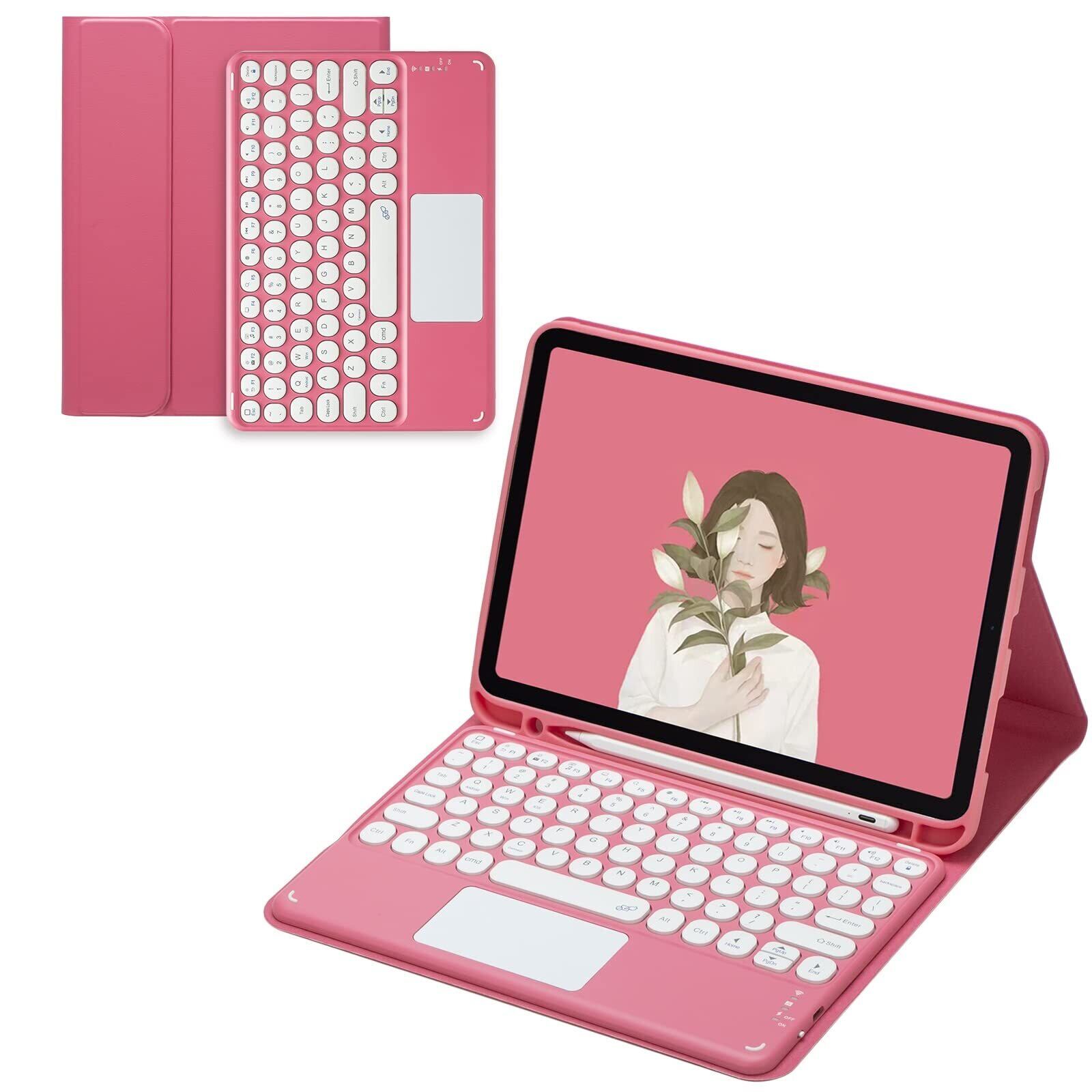 iPad 第6世代 第5世代 iPad Air2 Pro 9.7 キーボード ケース タッチパッド搭載 可愛い 丸型キー 9.7インチ iPad6 iPad5 iPadAir2 アイパッド 6 5 キーボード付き カバー マウス機能 ペンホルダー付き Apple Pencil 収納 (濃いピンク) | lcsshop