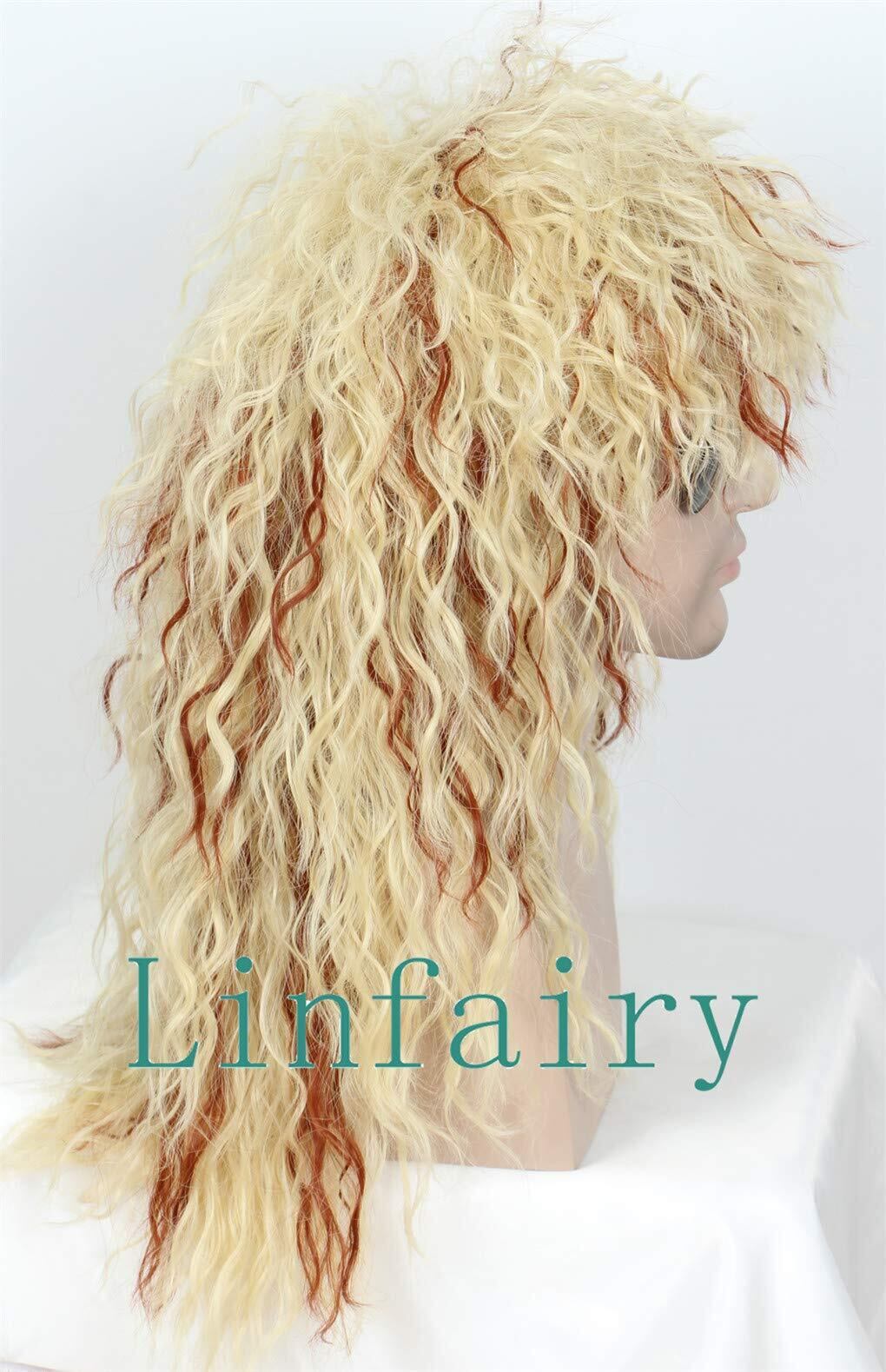 Linfairy Heavy Metal Rocker Adult Wig メンズコスチュームヘアアクセサリーヘビーメタルロッカーコスプレロング コスプレ ウィッグ (blonde Brown) | lcsshop
