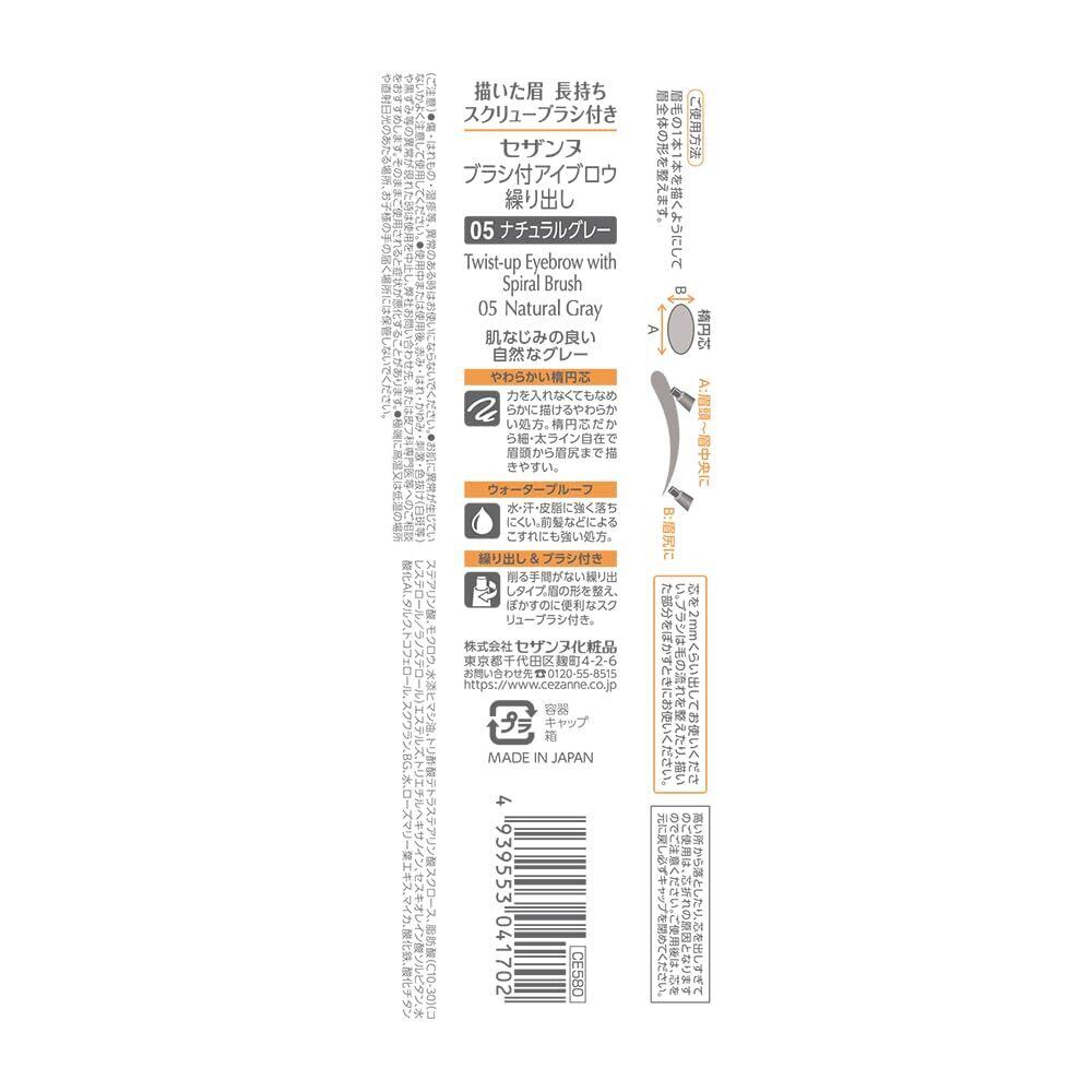 セザンヌ ブラシ付アイブロウ繰り出し05 ナチュラルグレー 0.21g 繰り出しタイプ ウォータープルーフ グラム (x 1)