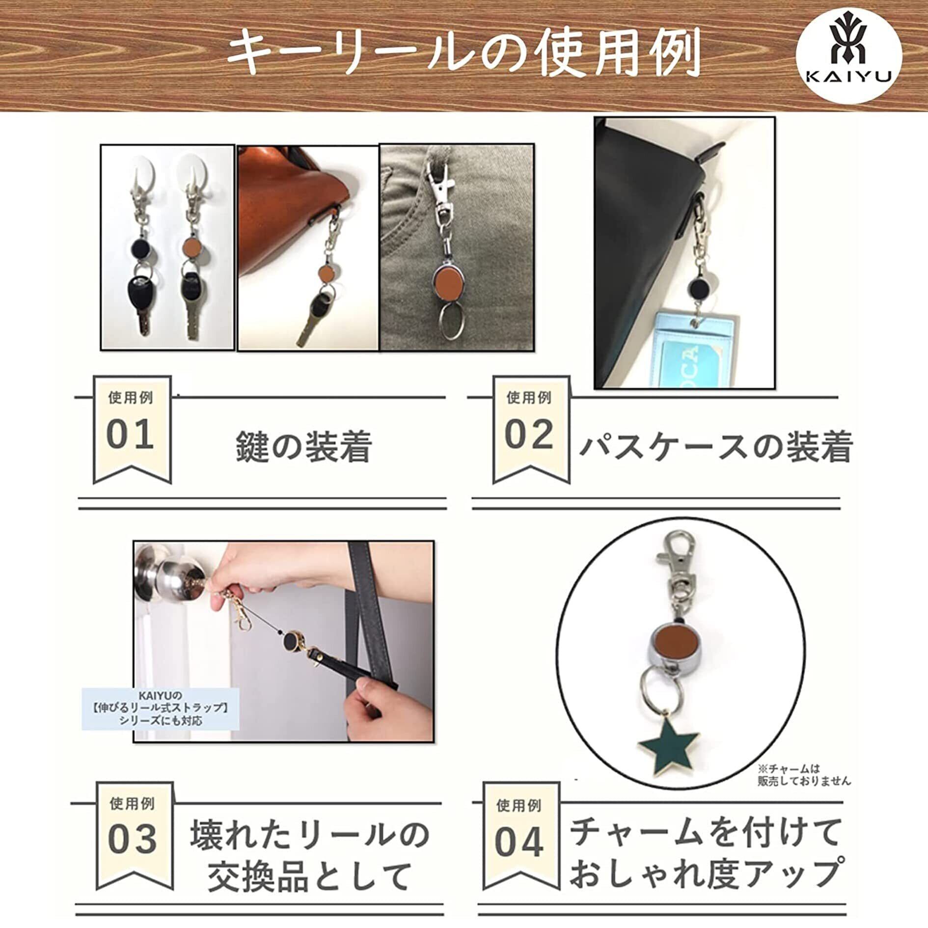 [KAIYU] 伸びるリール式 キーホルダー キーリール レザー