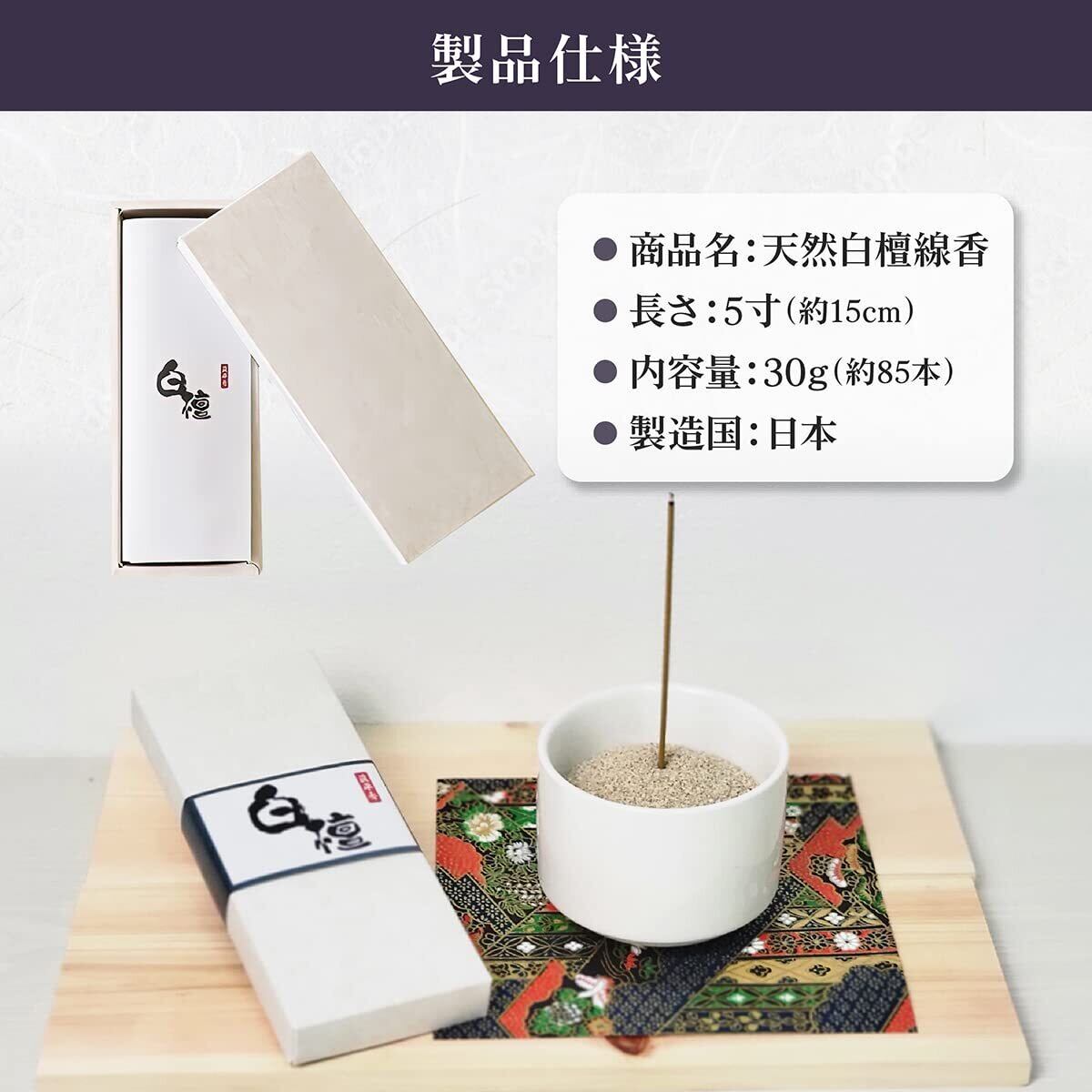 眞平香 白檀線香 30g (約85本) 5寸 天然白檀香木使用 高級 特選線香 お香