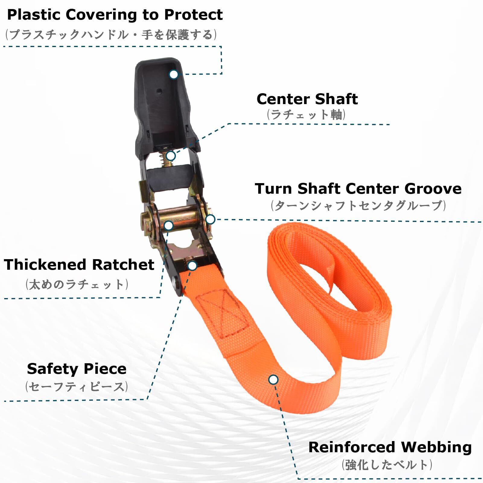YAPJEB 荷締めベルト ラチェット式 4m 5m タイダウンベルト ラッシングベルト 荷締機ベルト 固定ベルト 破断荷重800kg 締付 固定 引越し 運搬用 多用途 2本セット (3m, オレンジ - 幅2.5cm) | lcsshop