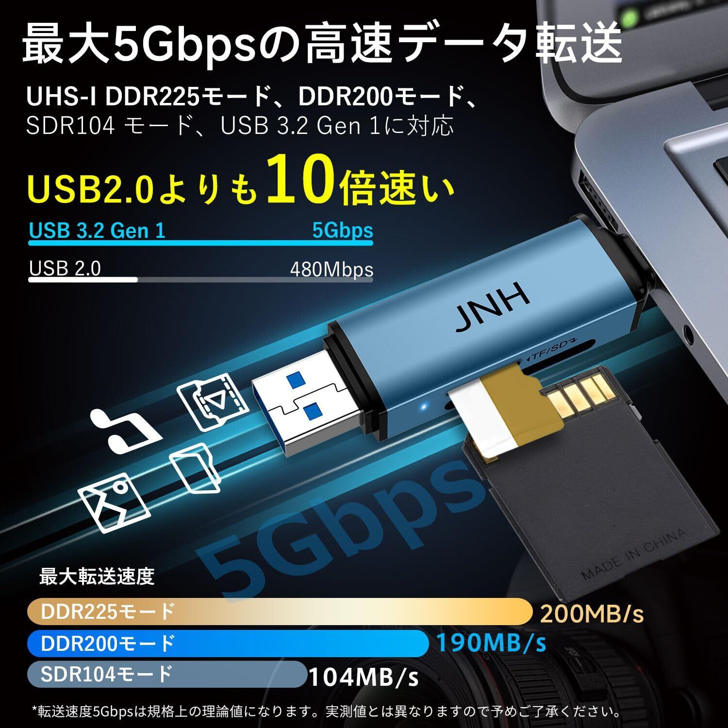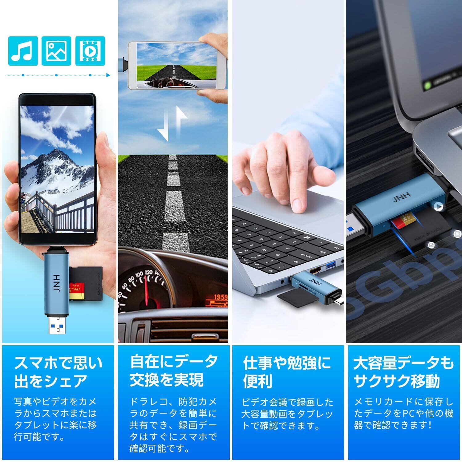 JNH SDカードリーダー CR-UD201 USB 3.2 DDR225モード 最高200MB/s 超高速転送 Type-C OTG対応 2-in-1 SDXC microSDXC カードリーダー Android スマホ タブレット/iPhone15 シリーズ/iPad Pro/MacBook Pro Air/Windows PCに適用