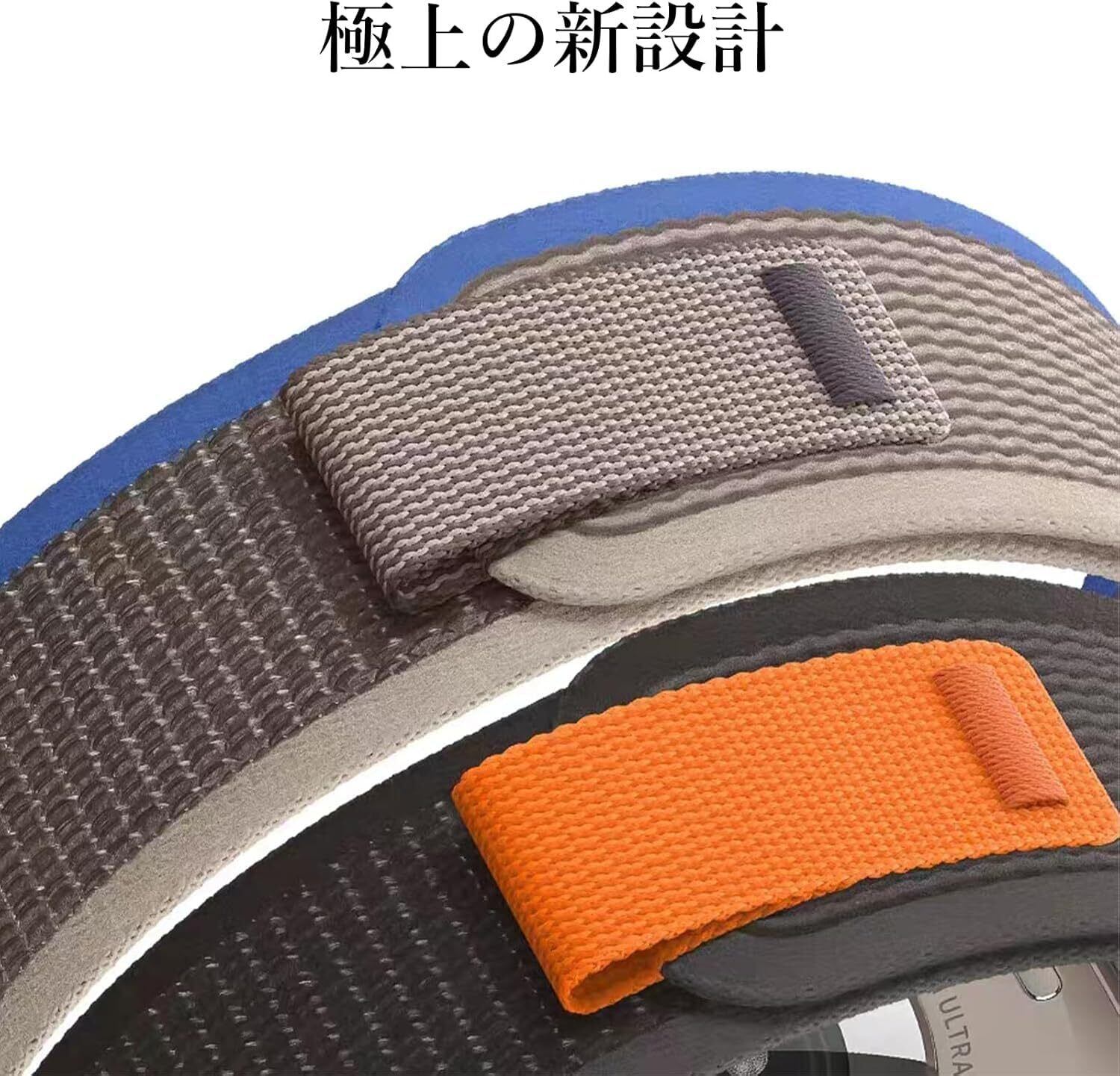 「対応機種」トレイルループは Watch Ultra 49mm, Watch Series Sultra2/1 S9/8/7/6/5/4/3/2/1/SE の 49mm 45mm 44mm 42mm 41mm 40mm 38mmに対応できます。(Apple watch付属いません)