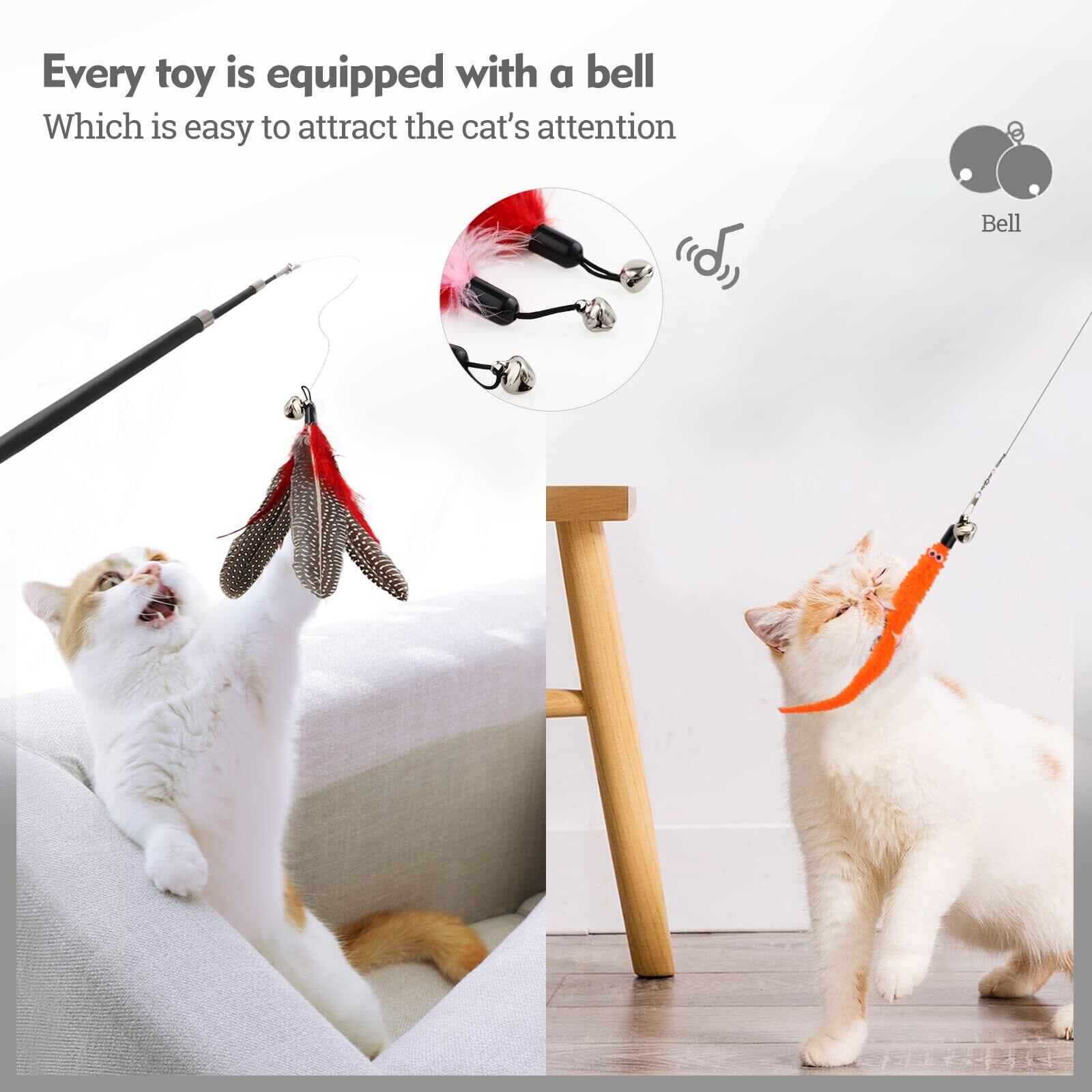 WD&CD 猫じゃらし 猫おもちゃ 交換用羽12個 竿2個 セット 天然 羽のおもちゃ 棒鈴付き ねこじゃらし ぶらぶら 猫のおもちゃ ペットグッズ ねこ用品 14点セット