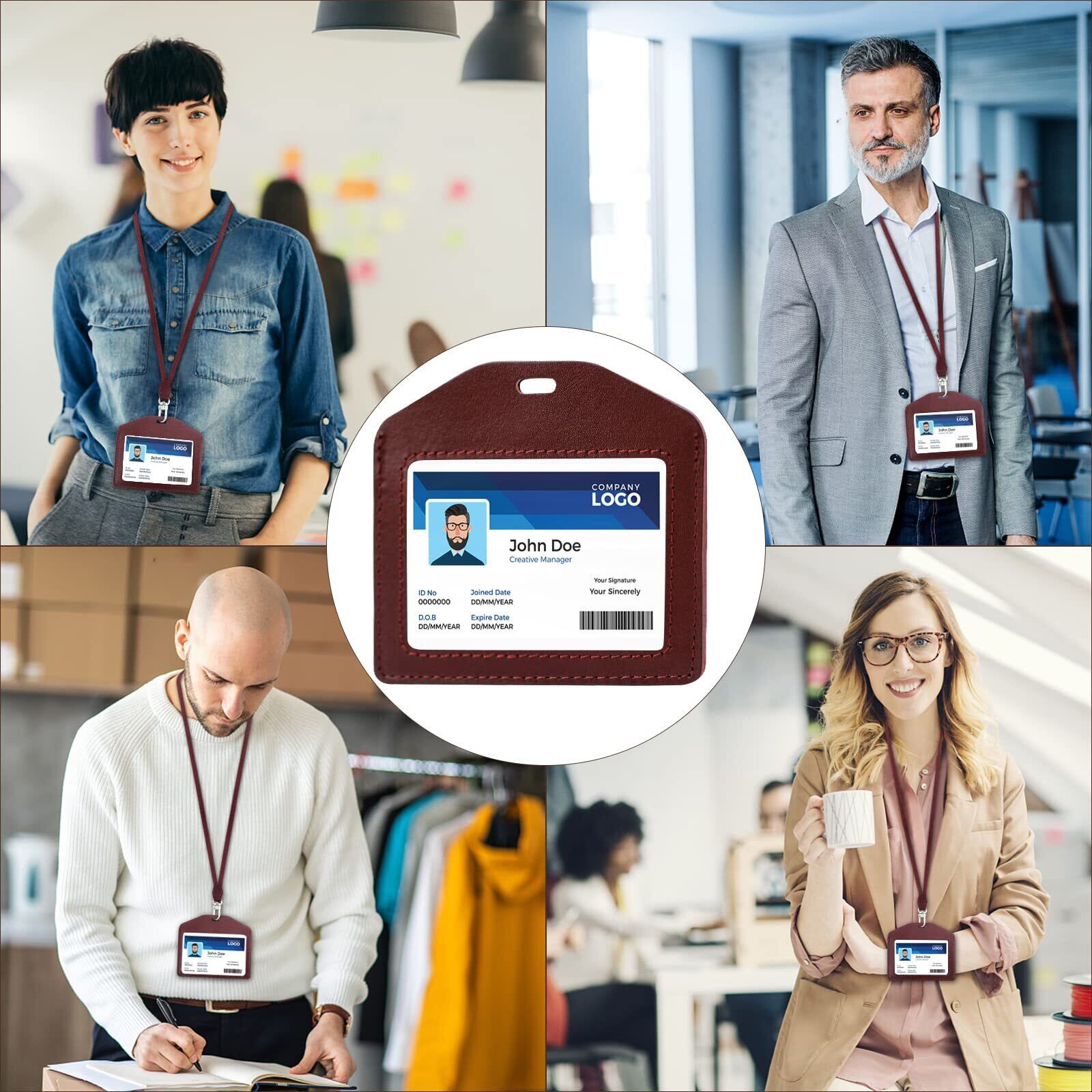 【本革ネームホルダー】天然本革を採用、手触りが柔らかくて、傷がつきにくいから耐久性にも優れています。シンプルながらもビジネスシーンで大活躍する横型IDホルダーデザインです。