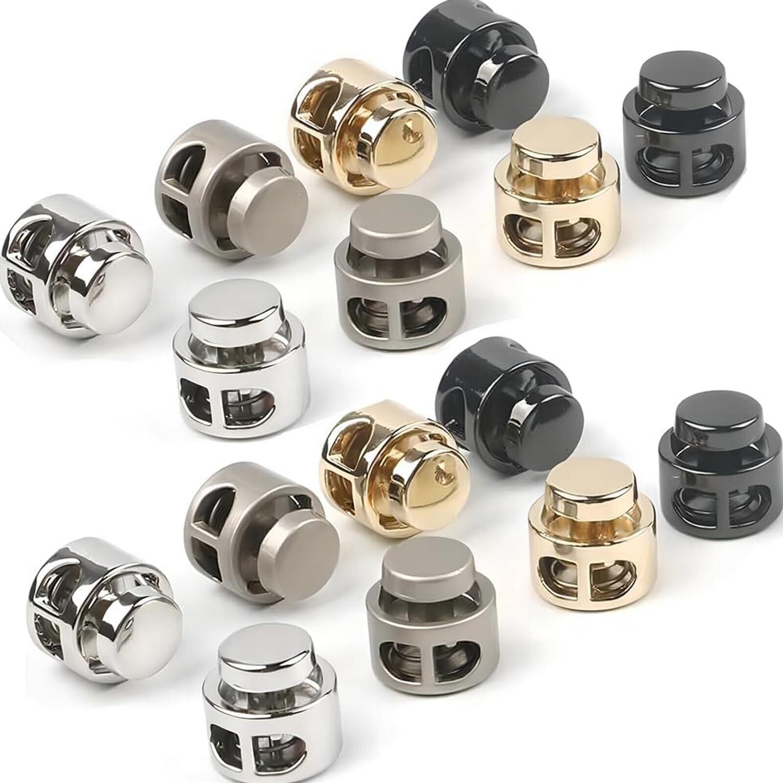 MAEXUS コードストッパー 調整ストッパー 金属 【16個セット 】丸型 穴径約4mm 4色 紐止 靴紐 交換 DIY 手芸 ハンドメイド材料 材料 素材 補修用 帽子用あごひも 靴ひもに | lcsshop