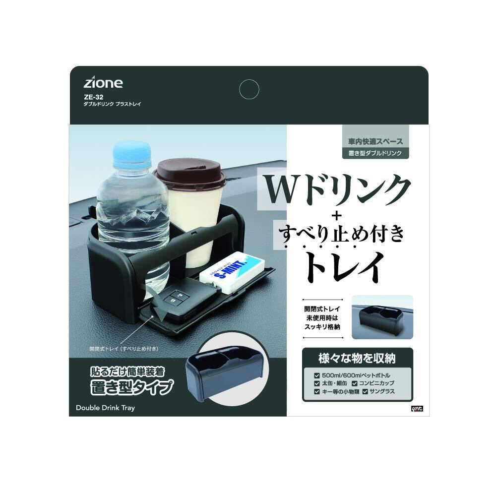 槌屋ヤック(Tsuchiya Yac) 車内用品 ダブルドリンク ホルダー プラス トレイ ブラック ZE-32
