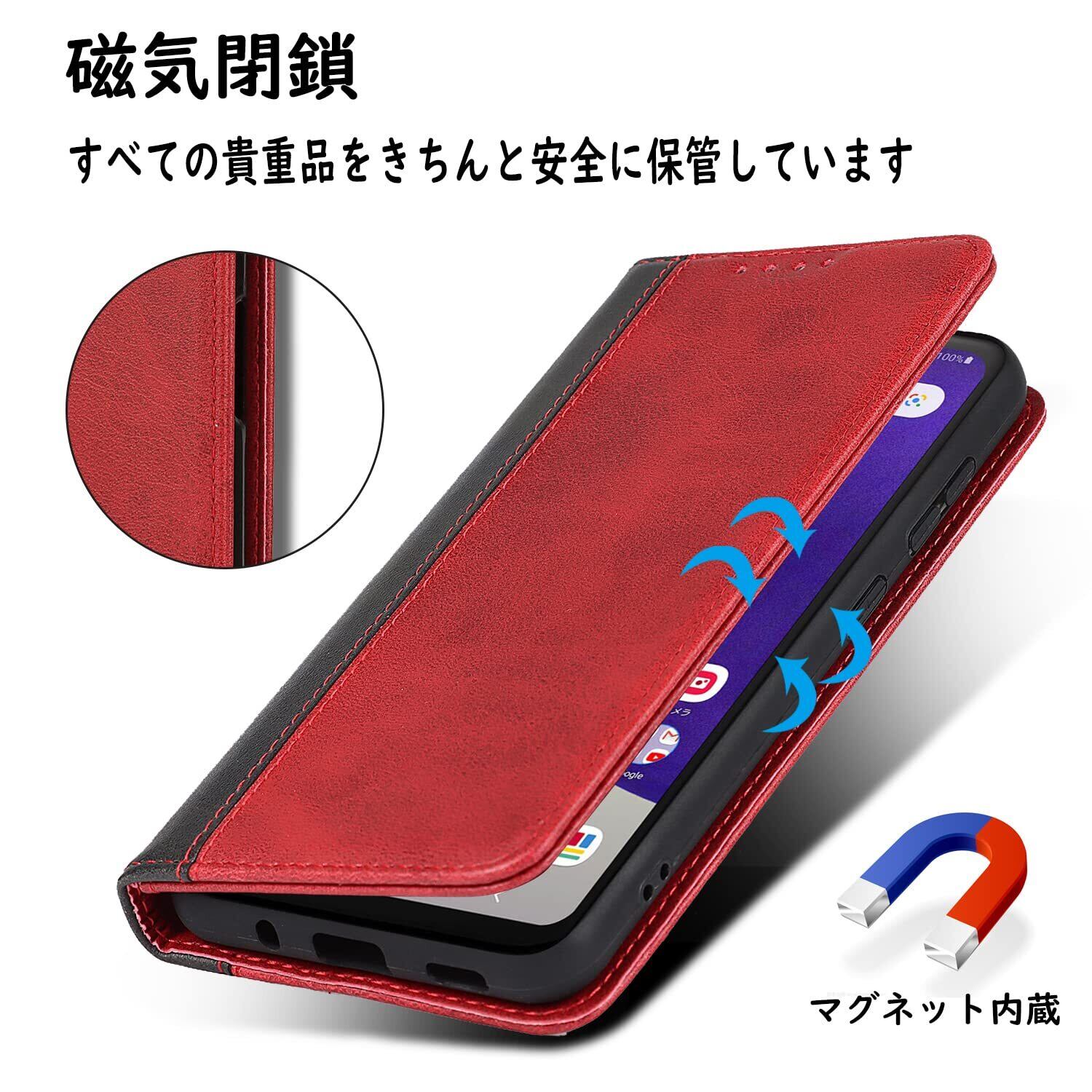Havaya Galaxy S22 ケース ギャラクシーs22 ケース 手帳型 SC51C docomo SCG13 au ドコモ samsung サムスン SC-51C 耐衝撃 カバー SoftBank カード収納 スタンド機能 レザー-レッド+ブラック