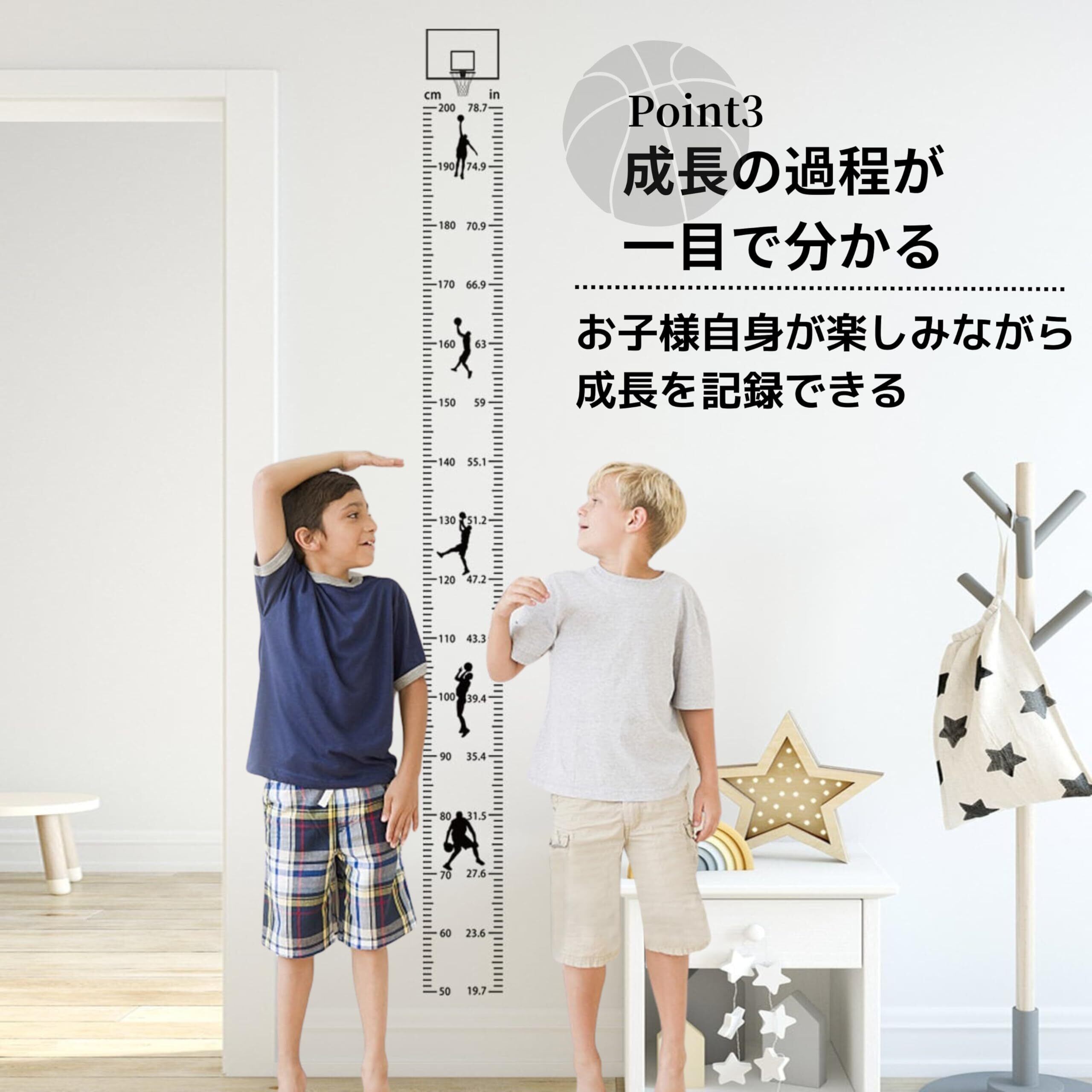 【用途・シーン】 子供部屋やリビングに貼って、日々の成長を楽しく記録できます。バスケットボール好きのお子様には特におすすめです。また、インテリアとしてもシンプルでありながら目を引くデザインで、どんなお部屋にも合います。