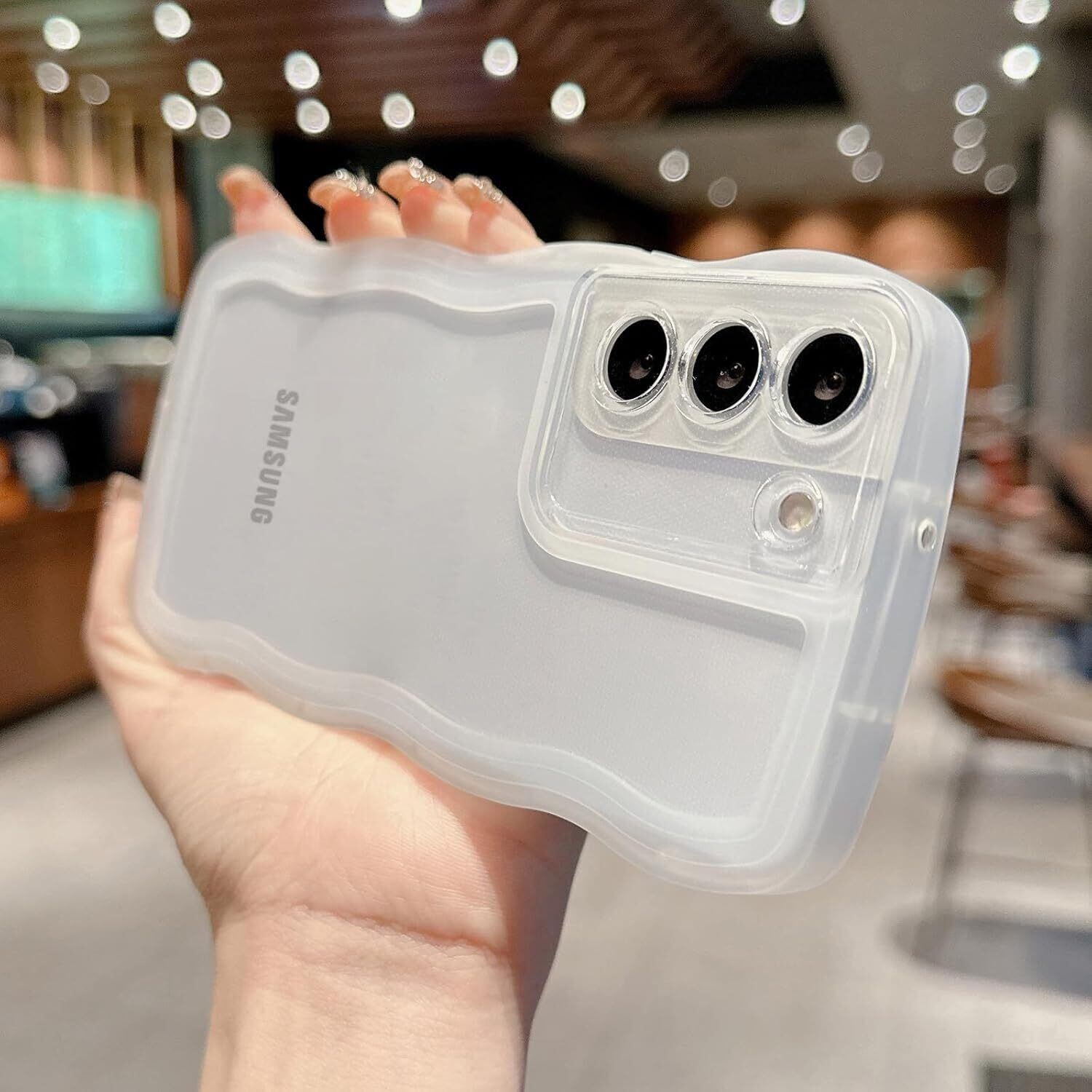 透明感 ▪ フィット感:背面は透明度ポリカーボネートの素材で、Galaxy A53本来の美しさと高級感をそのままに映り出し、あなたの携帯電話は、より美しさとファッションに見えるようにします。サイド周りのウェーブ部分は柔らかな素材のTPU素材で、デザインが手にフィットして持ちやすく、可愛い、流行りの韓国デザインです