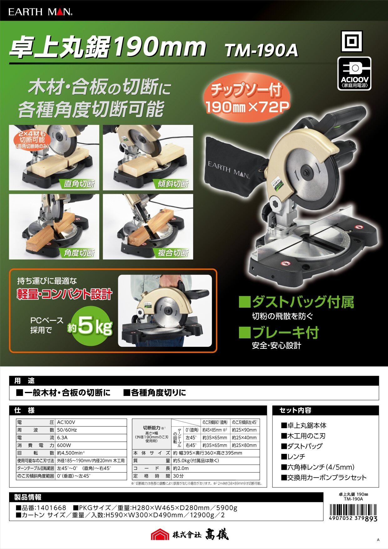 高儀(Takagi) 卓上丸のこ 190mm EARTH MAN TM-190A【ブレーキ付】 丸鋸 丸のこ スライド丸鋸 卓上丸ノコ テーブルソー 丸ノコ 電動ドライバー チップソー切断機 | lcsshop