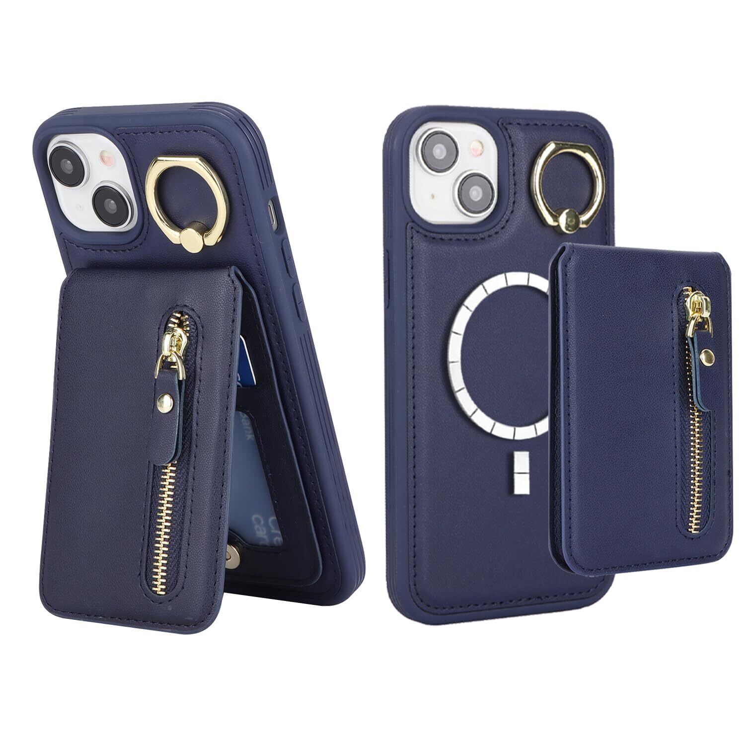 Havaya いphone14 ケース MagSafe 対応 iPhone13 ケース マグセーフ 分離式 リング付き 耐衝撃 カード収納 ファスナー ワイヤレス充電対応(6.1インチ対応)-ブルー