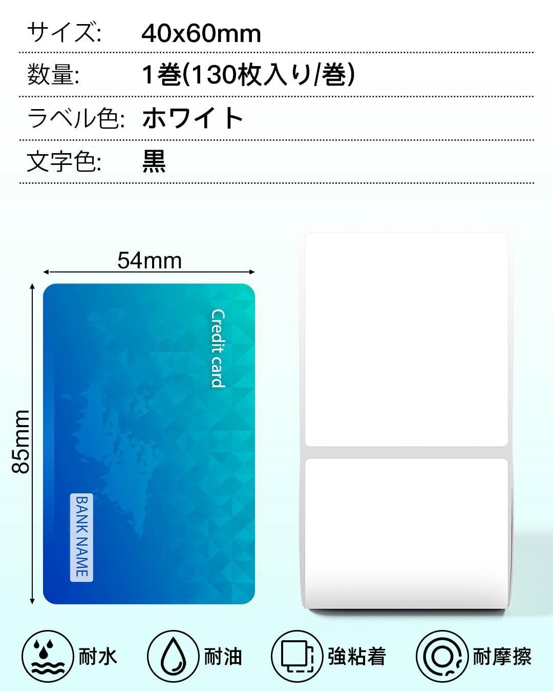 「用紙規格」40x60mm、角丸、白ベース、黒文字、1個あたり130枚、Pesuzaの感熱紙は Phomemo M110 M120 M220 対応