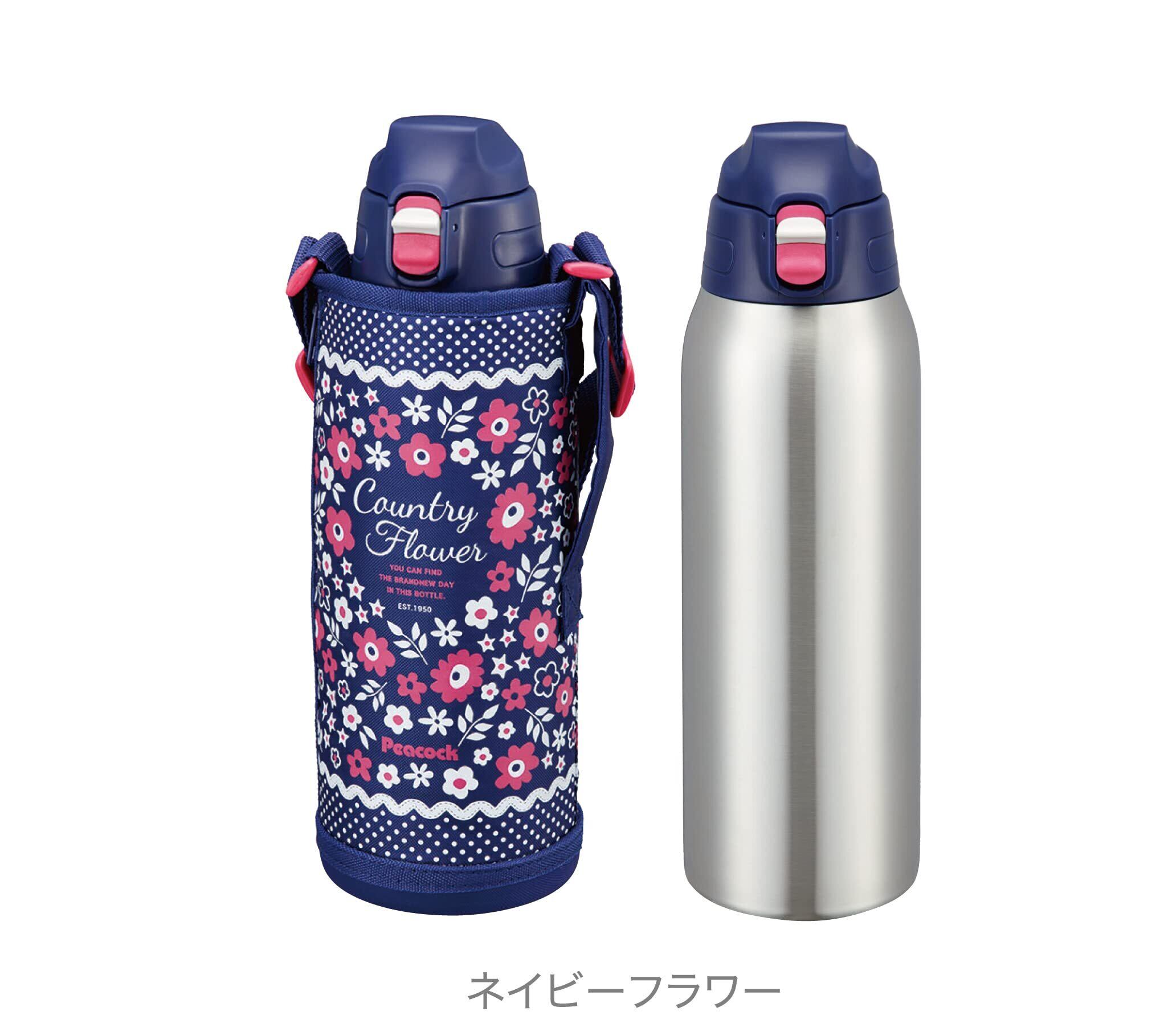 ピーコック魔法瓶工業(The-peacock) ピーコック 水筒 キッズ 1000ml 保冷 ワンタッチ 直飲み 子供 ダイレクトボトル ポーチ付き 1l ネイビーフラワー AJC-F101 AKF | lcsshop