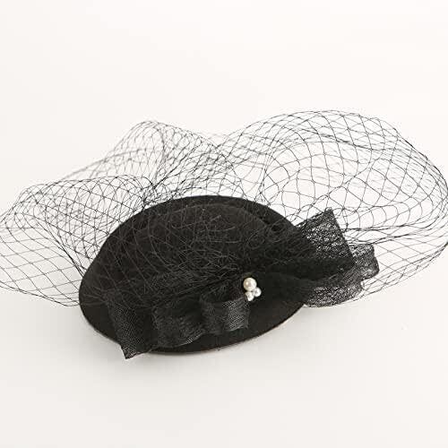 [WOWUAD] カクテルハット トークハット トーク帽 白 黒 ウエディング帽子 チュールヘッドドレス ブライダル レディース 花嫁用 結婚式 パーティー パーティー フォーマル ハット 舞踏会 披露宴