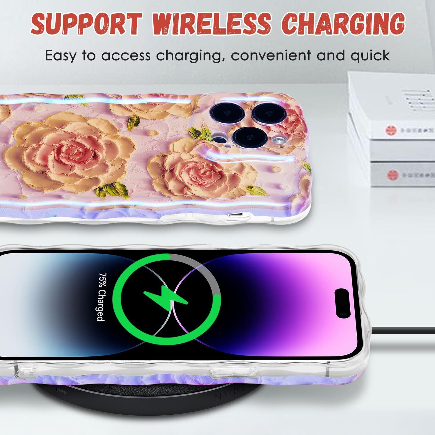 【精確なカットアウト】精密なカットアウトにより、すべてのボタン、ポート、スピーカー、カメラ、その他の機能に簡単にアクセスできます。携帯電話ケースを付けたままでもワイヤレス充電です。