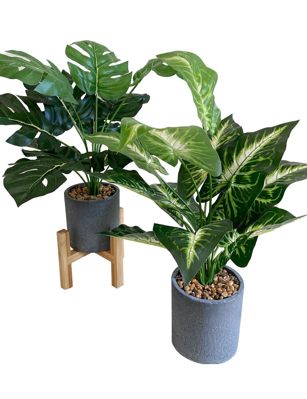 Kugusa 【生花店監修】 フェイクグリーン 人工観葉植物 モンステラ 鉢植え 造花 インテリア 枯れない 2点セット 花台付き (モンステラとカラジウム)