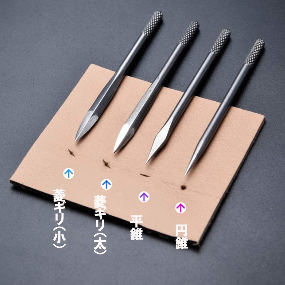 RMTIME 菱きり レザークラフト 穴あけ 工具 ツール 静音 菱ギリ 極上菱錐 細目 菱ギリ 菱錐 千枚通し きり 穴あけ 工具 1本4役