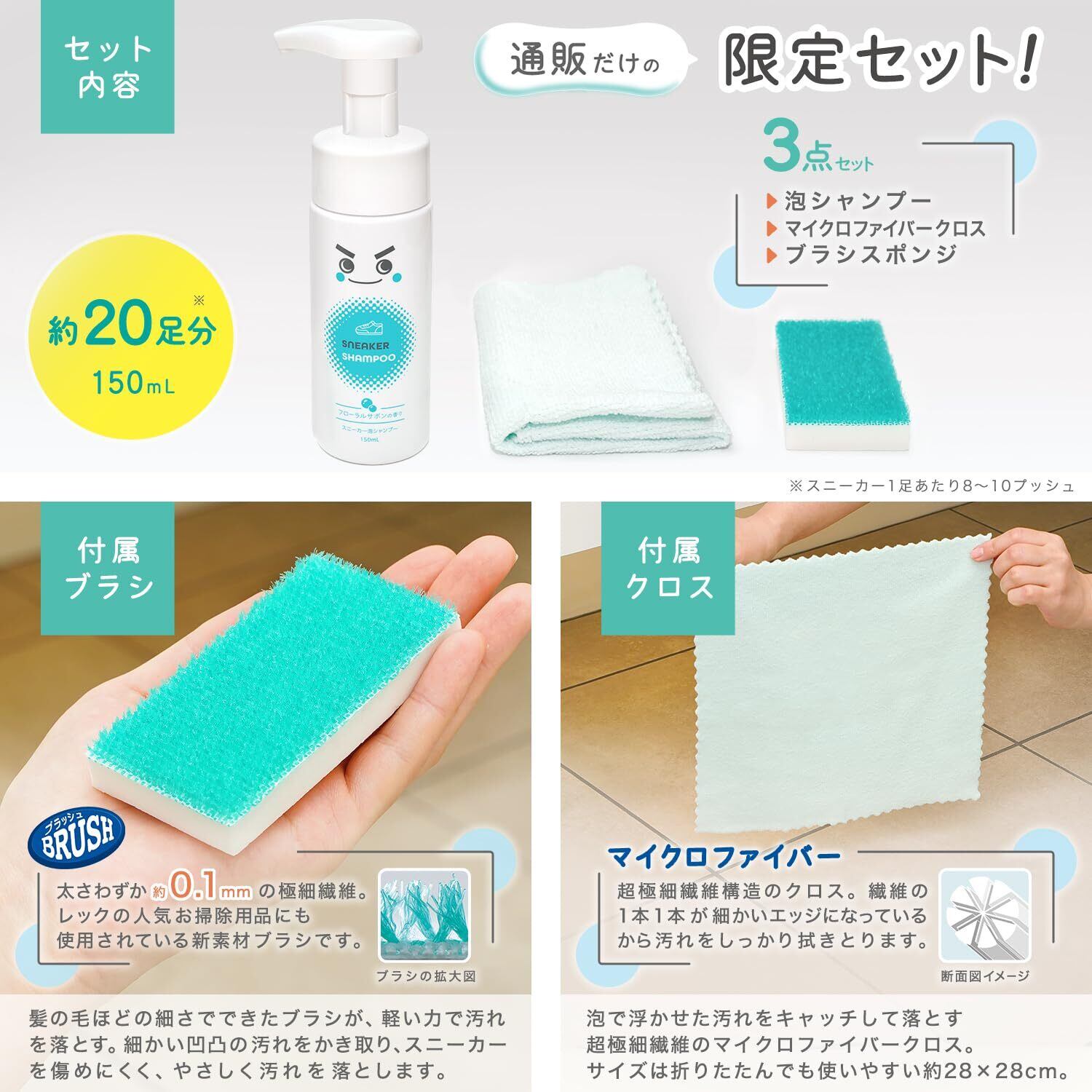 [レック] シューケア製品セット 激落ちくん スニーカー 泡シャンプー 限定セット (本体 & ブラシ & クロス 3点セット) 水不要/消臭/多素材に対応/約20足分/ 保湿成分配合 ホワイト 60×50×175mm | lcsshop