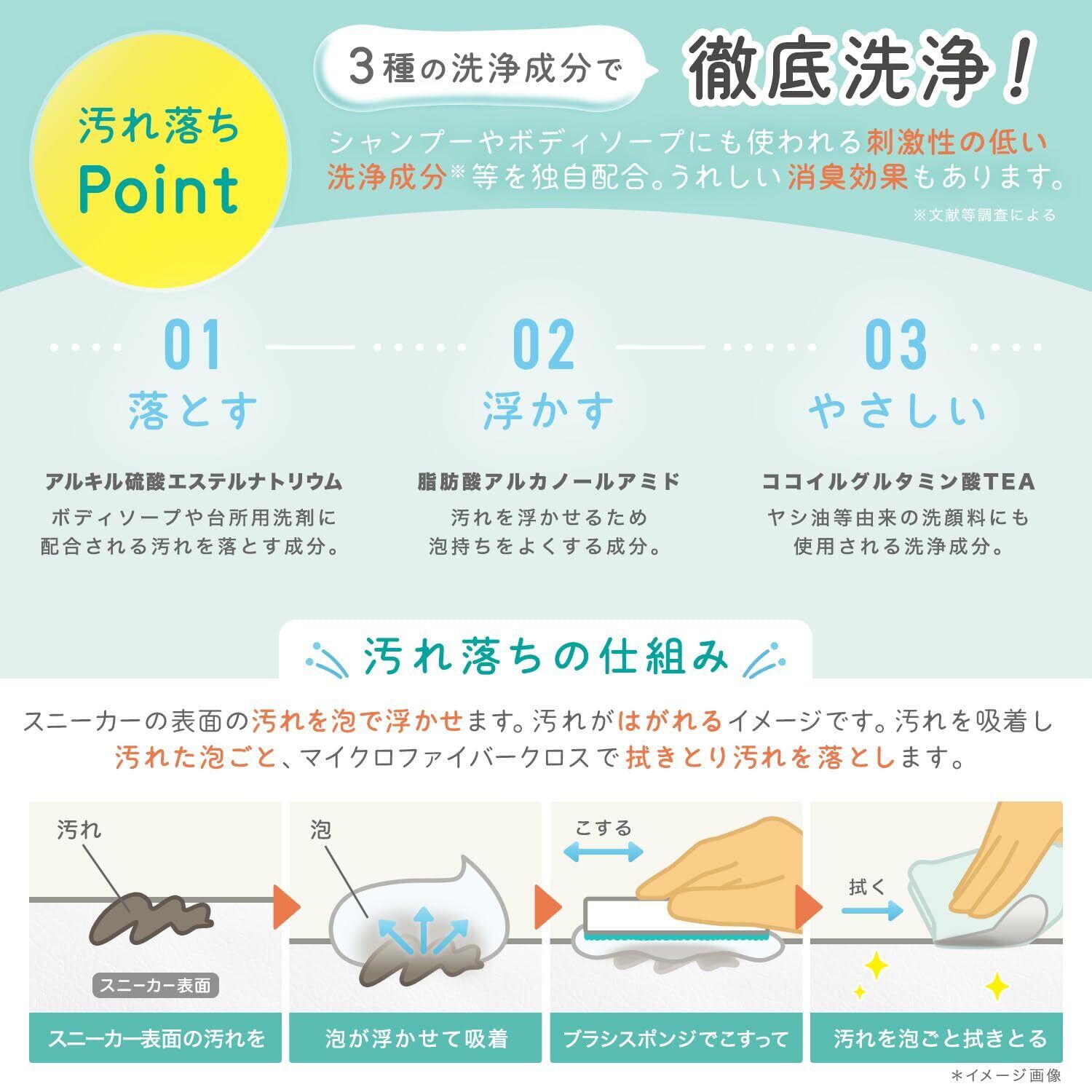 [レック] シューケア製品セット 激落ちくん スニーカー 泡シャンプー 限定セット (本体 & ブラシ & クロス 3点セット) 水不要/消臭/多素材に対応/約20足分/ 保湿成分配合 ホワイト 60×50×175mm