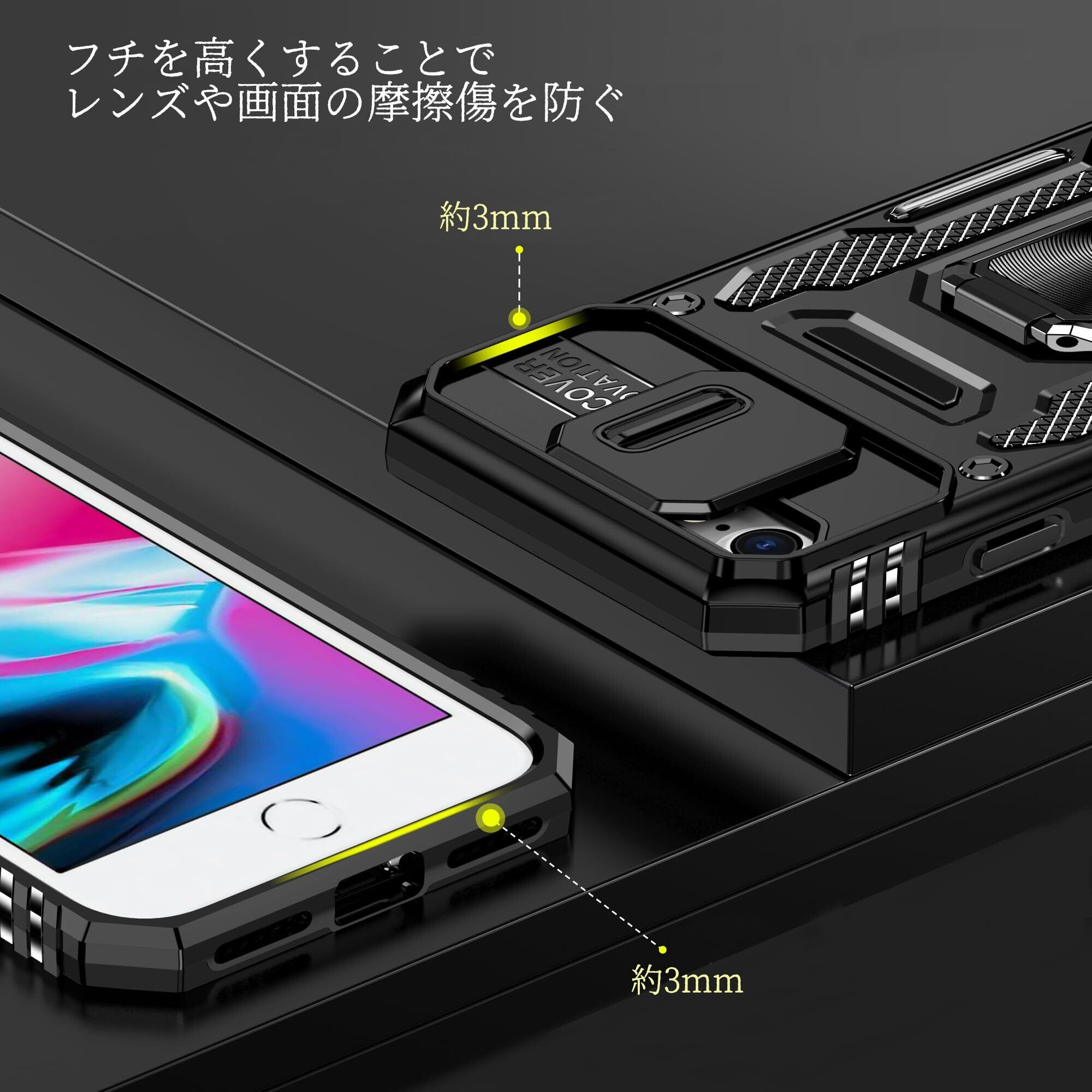 [Taosan] iPhone SE2/SE3 iPhone7/8 共用 ケース リング付き 耐衝撃 軽量 PC+TPU 360度回転 落下防止 カメラ保護 スタンド機能 スマホケース iPhone SE (第3世代) / (第2世代) / 8 / 7 対応 ブラック | lcsshop