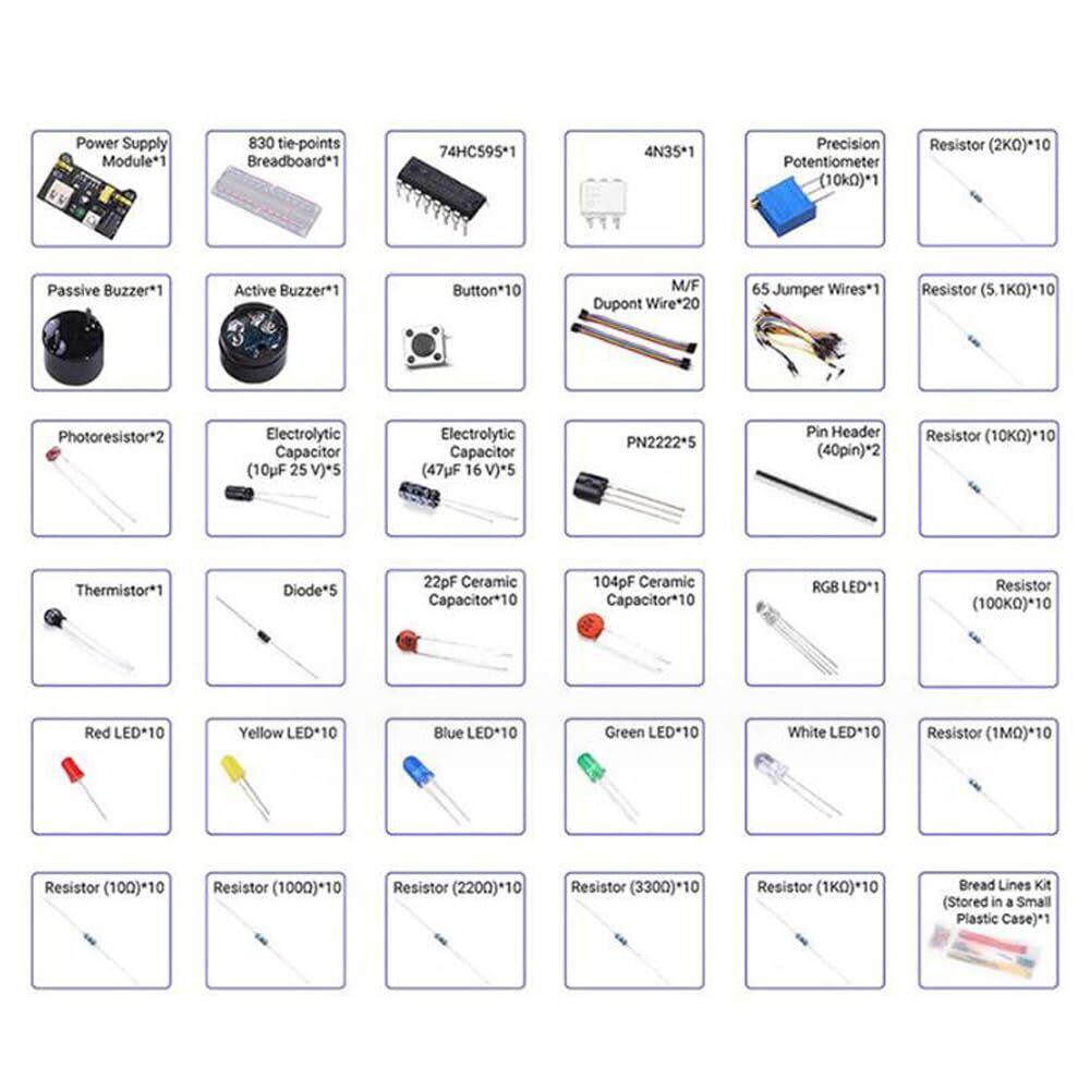 GOODCHI 電子エンターテインメントキット 新しいブレッドボードセット 電子部品スターター パワーモジュール DIYキット 830接点ブレッドボード R3用 コンポーネントパッケージ プラスチックボックス付き | lcsshop