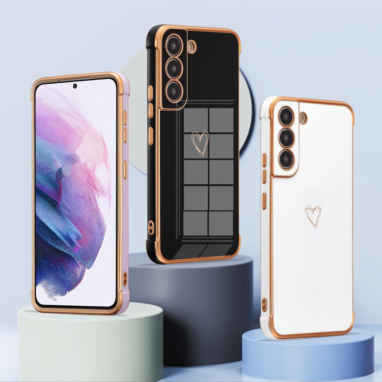 ZTOFERA Samsung Galaxy S21 用 ハートケース 柔軟な TPU シリコン メッキ加工 ソフト 軽量 耐衝撃 おしゃれ 韓国 可愛い サムスン ギャラクシー S21 ケース 携帯カバー 女性 心パターン スマホケース ワイヤレス充電対応 (ホワイト) | lcsshop