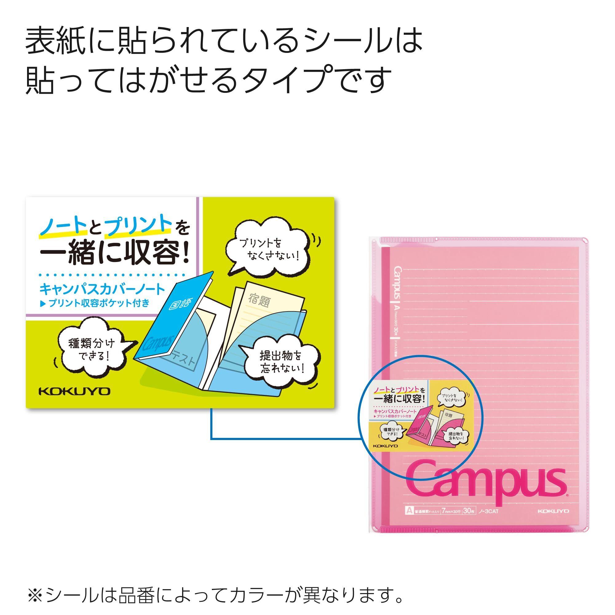 ●セミB5サイズのノートとプリントをまとめて一緒に持ち運べるキャンパスカバーノートです。プリントを収容できるポケットが付いています。
