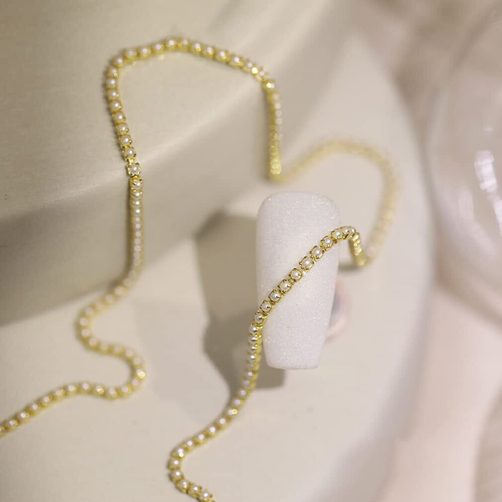 Chisafly ネイルパーツ チェーン ネイル チェーン パール チェーン きらきら 裁断可能 2本 約50cm (パール-ゴールド)