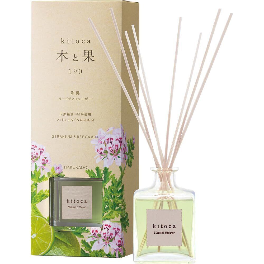 晴香堂(Harukado) kitoca 木と果 190 天然精油100%使用 リードディフューザー 190ml ゼラニウム&ベルガモット