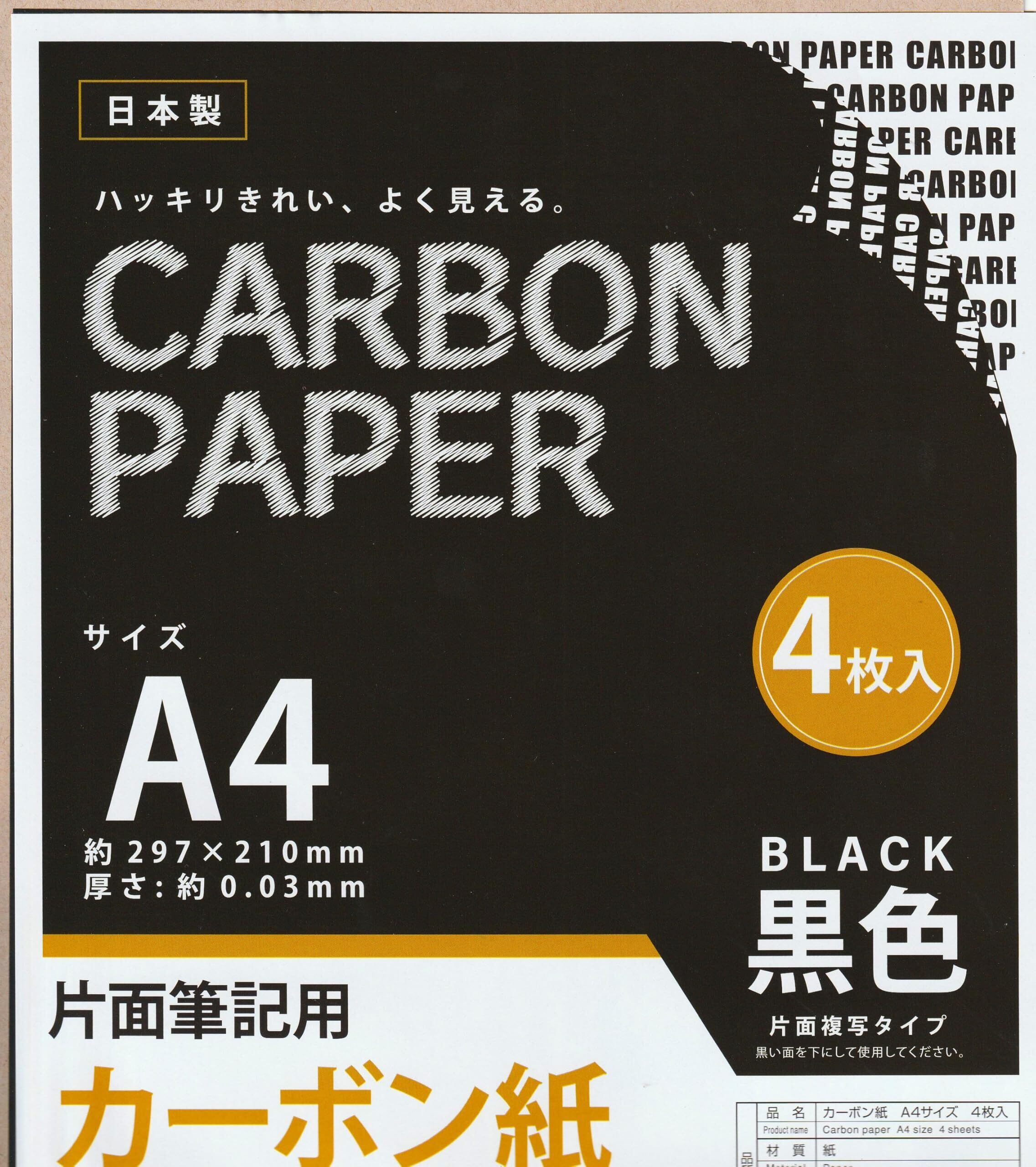 カーボン紙 A4サイズ 4枚入 黒色 片面複写タイプ 0434