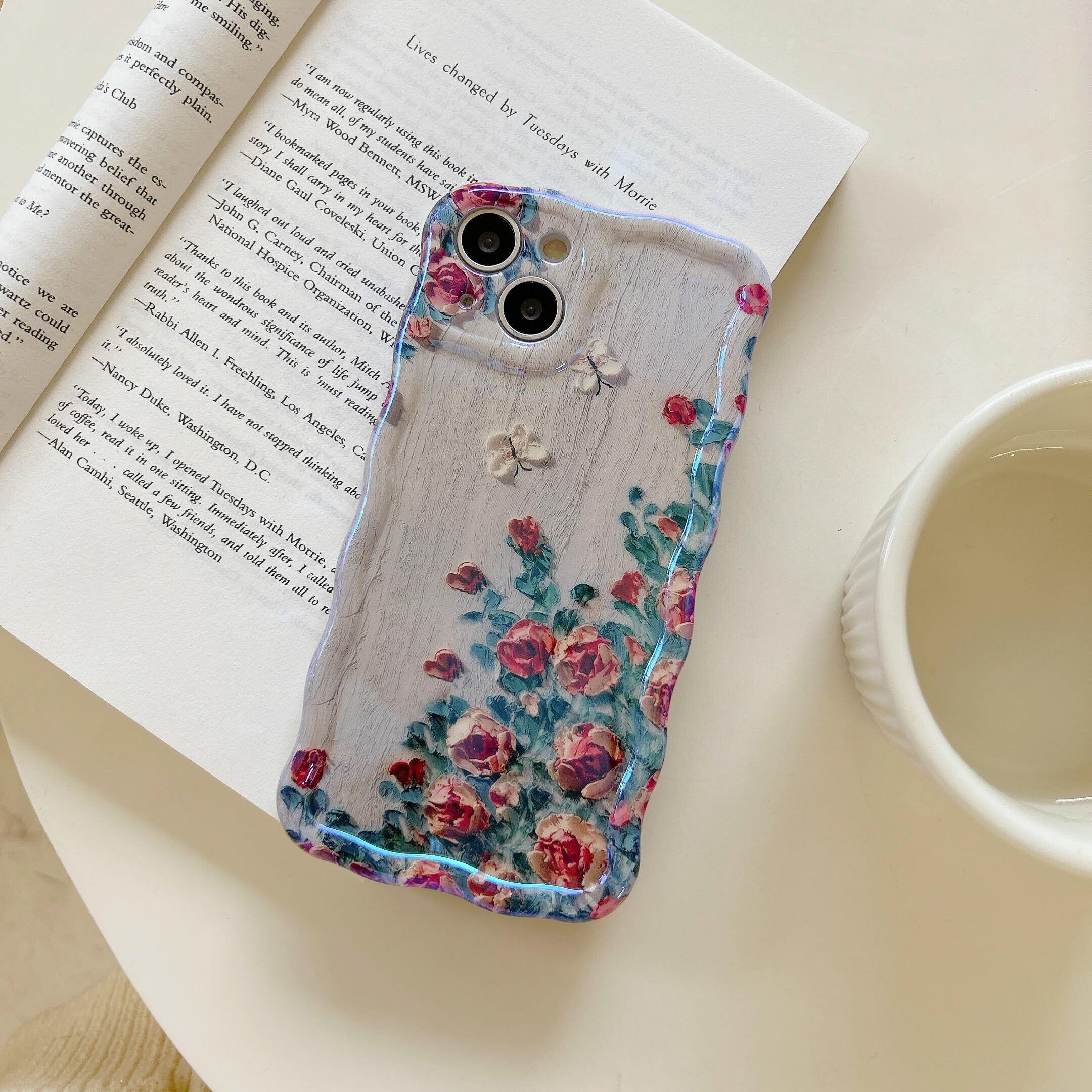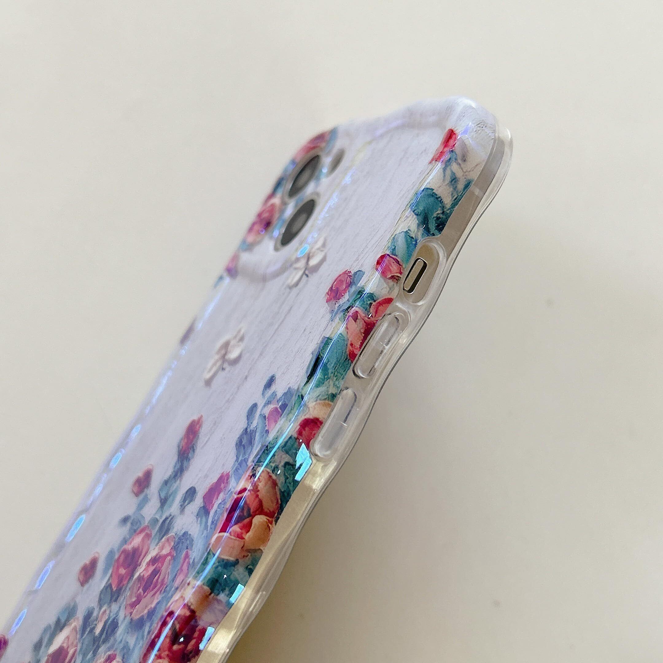 【花柄デザイン ▪ フィット感】背面にカラフルな油絵の花柄、色味が優しく、いつものスマホに上品さをプラス。側面が透明なデザインからiPhone 14カラーが見えるデザインで、本来の美しさと高級感をそのままに映り出し。