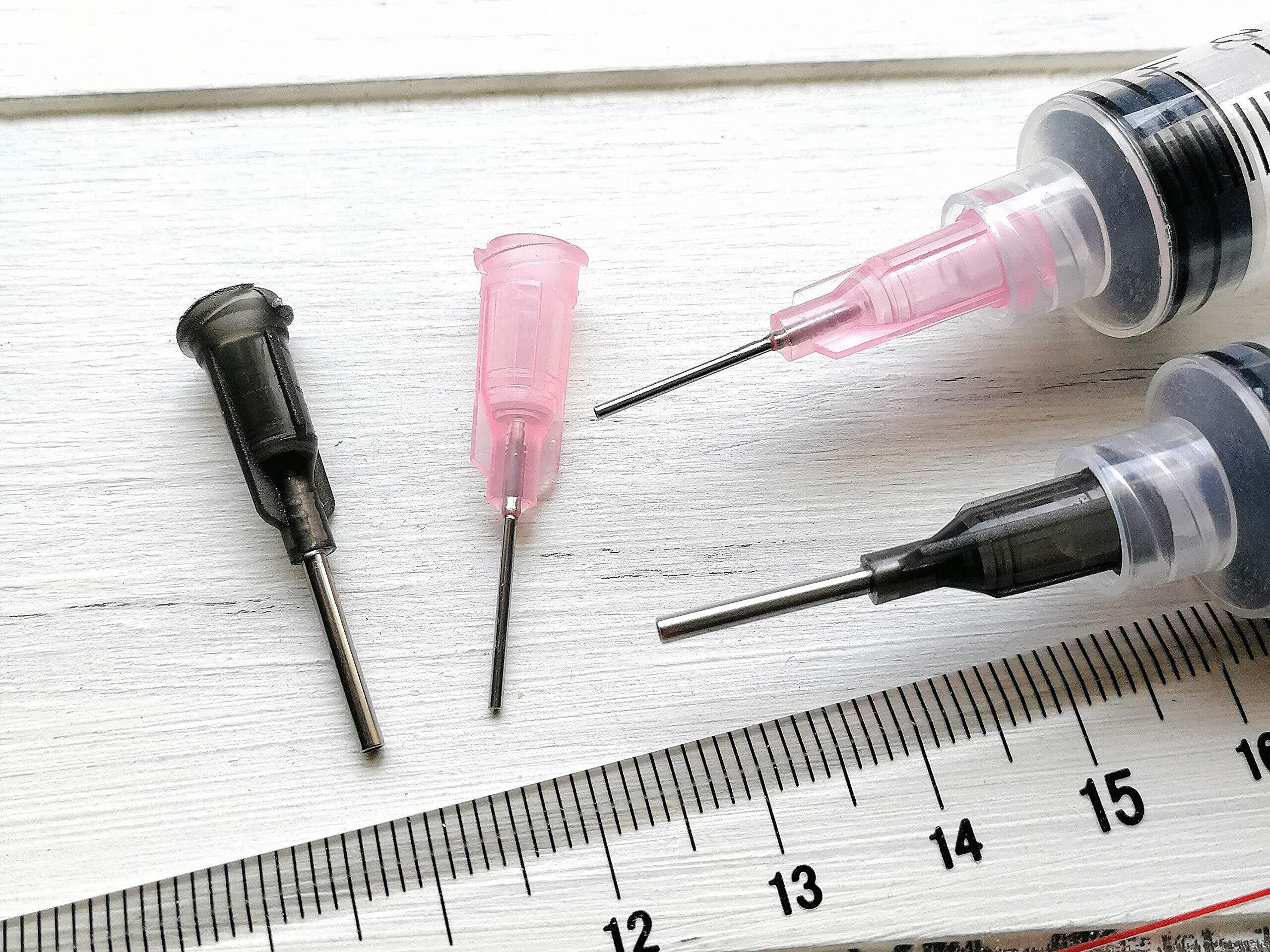 注射筒は10本、針先は径が2サイズ各10個(合計20個)のセットです。針先は尖っていないので突き刺して使用するには不向きです。針先はねじ込み式ですので液漏れの可能性が低くなっています。