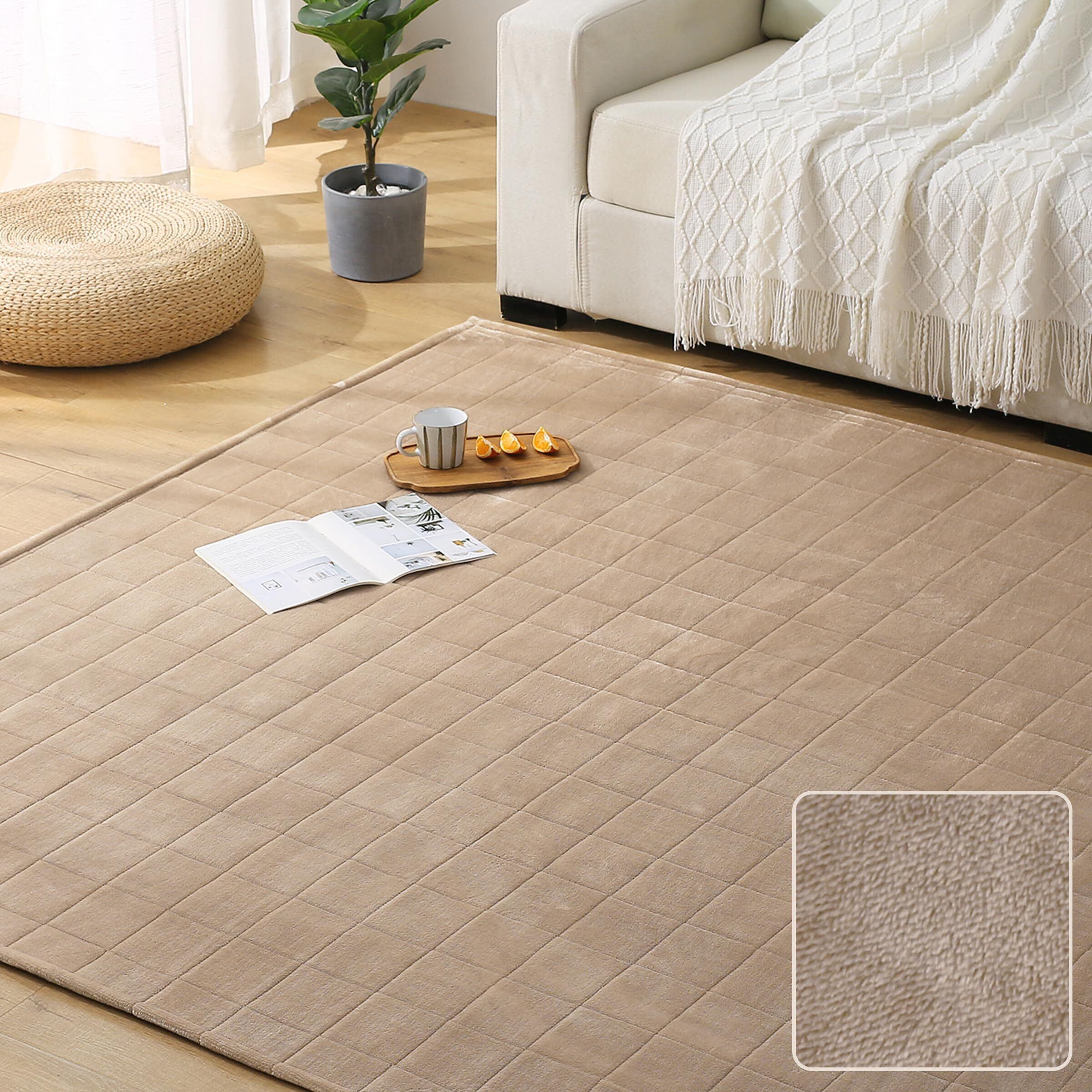 Keusnix ラグ カーペット キルトラグ 滑り止め付き 洗える ラグマット 185×185cm 約2畳 絨毯 オールシーズン 抗菌防臭 ふわふわ肌触り フランネルラグ 床暖房 ホットカーペット対応 無地 モカ | lcsshop