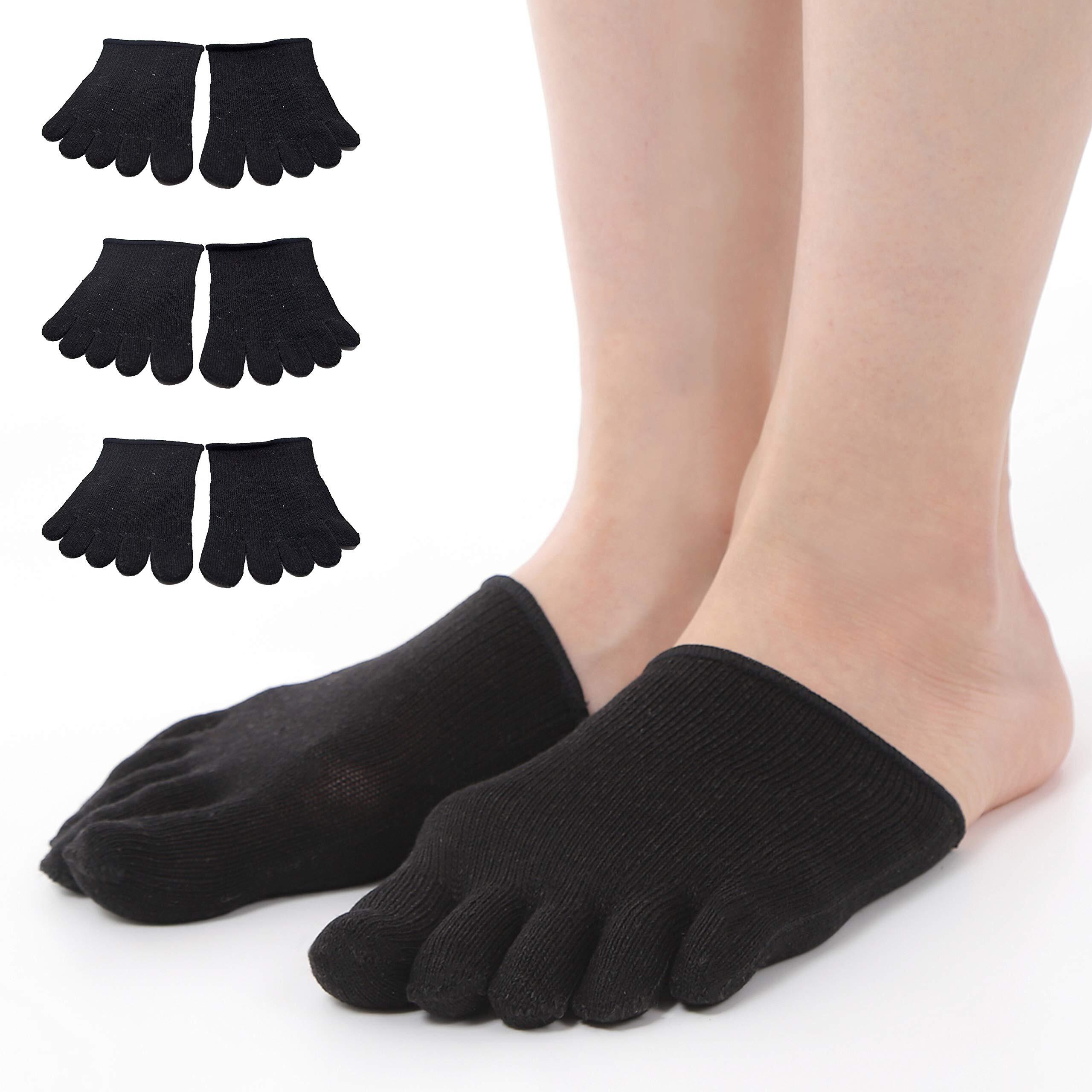 USK STORE シルク 5本指ハーフソックス 3足セット 重ね履き 冷え取り 天然素材 男女兼用 22-27cm (黒)
