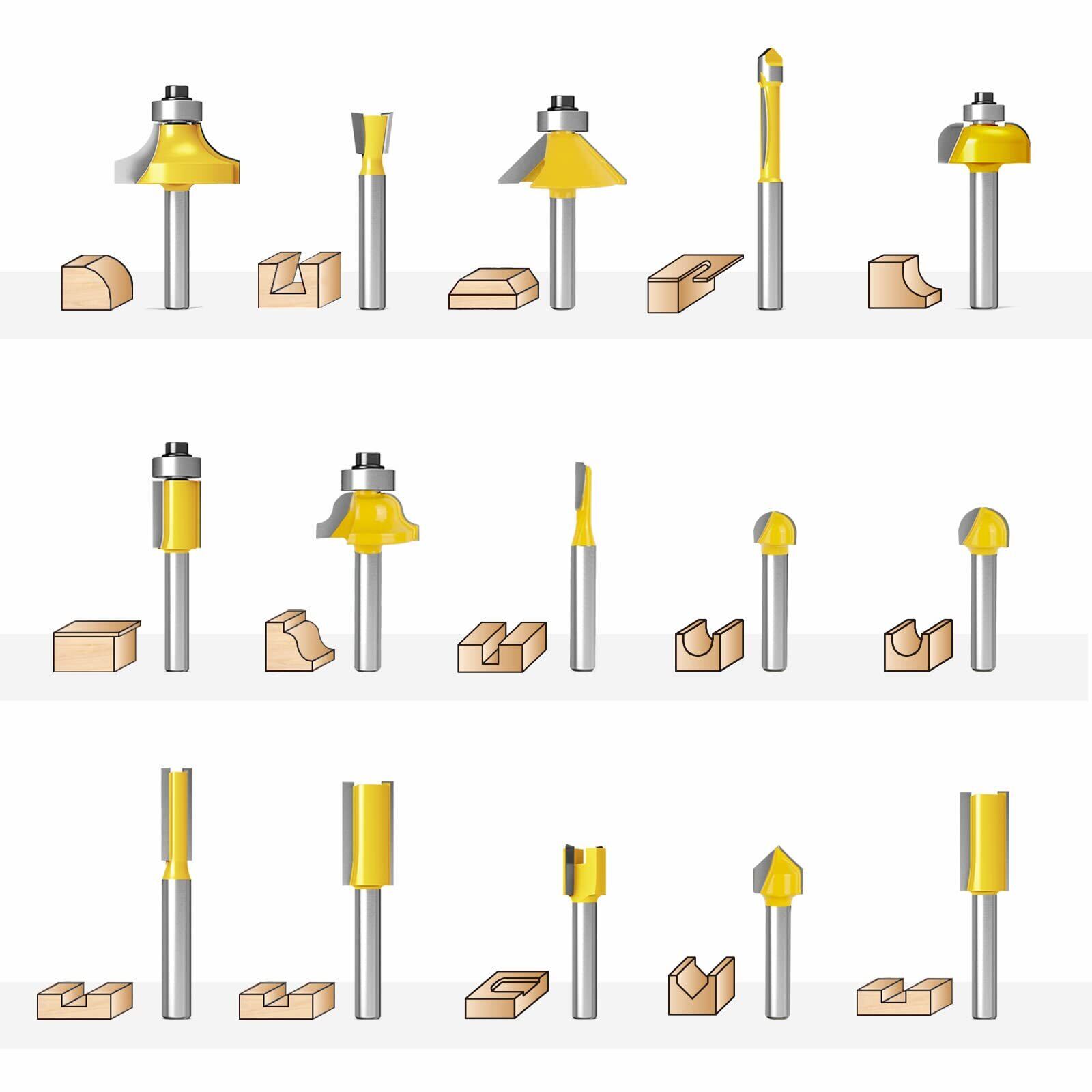 CSOOM プロ木エトリマ一ビット乜ット超硬ル一夕一セット15本組 軸径6mm 収納ケ一ス付き 溝ほり・面取り・飾り面加工·目地払いビット フライスカッ夕一乜ット初心者のための15個の6mm木工工具のル一タビット乜ット | lcsshop