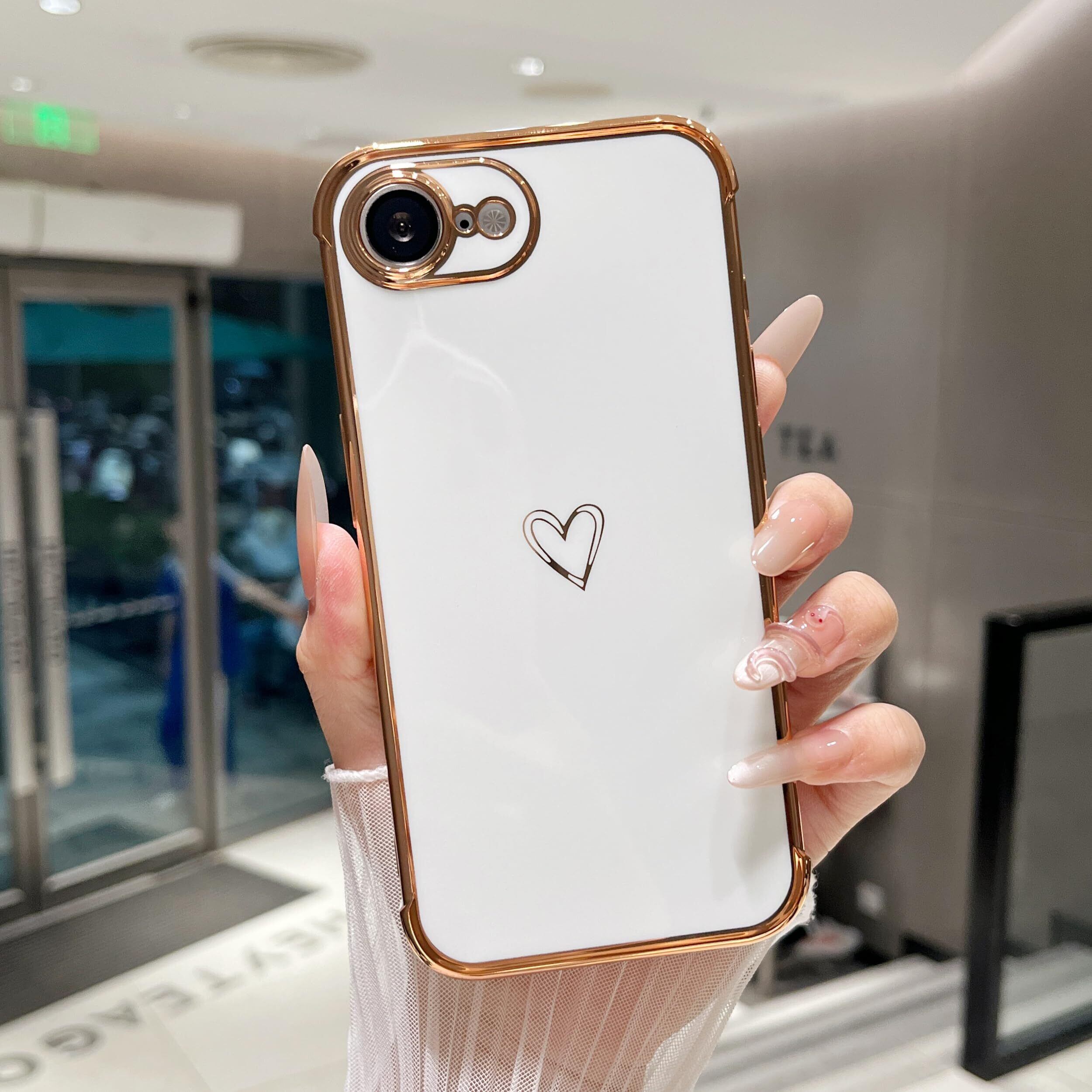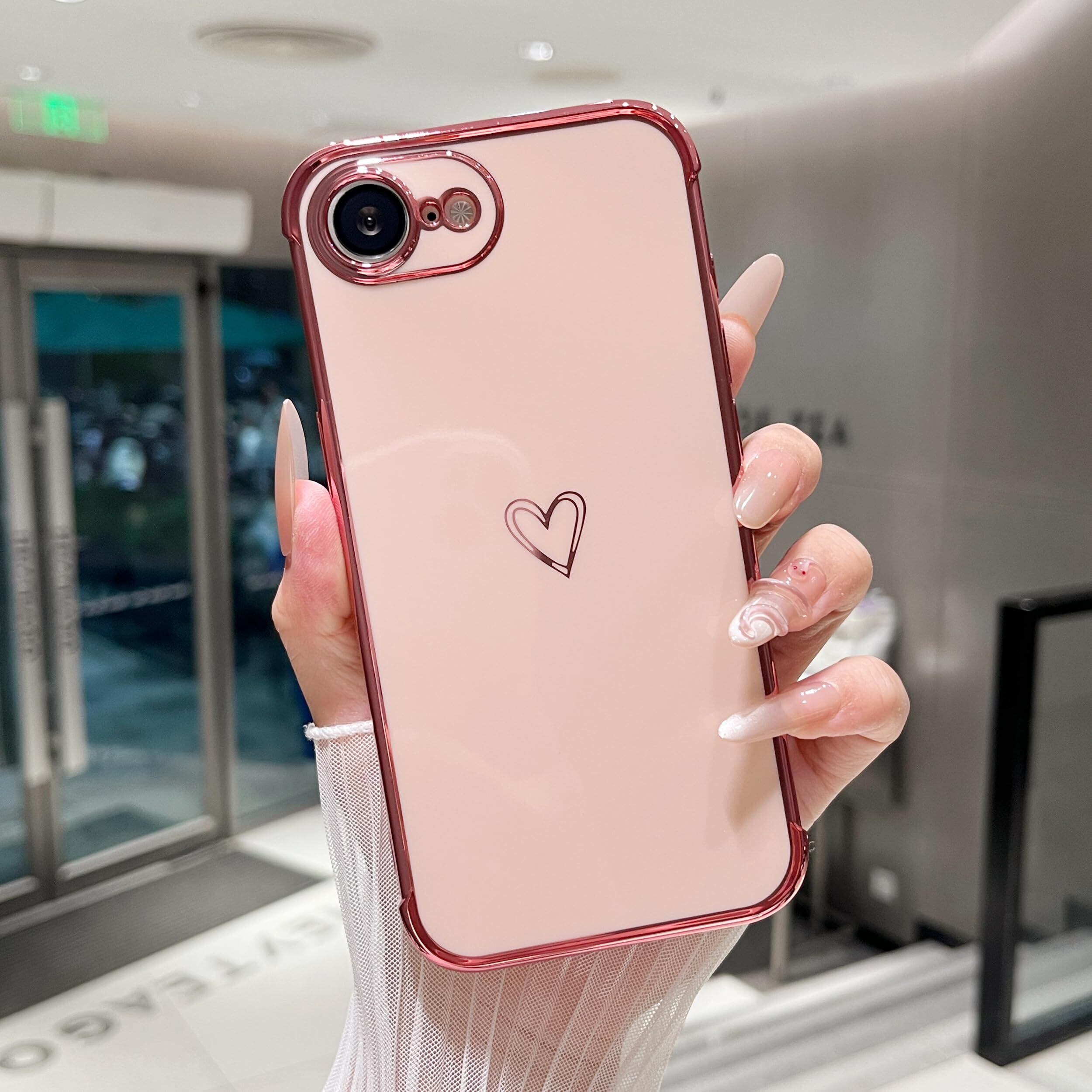 ZTOFERA iPhone 16e ケース 柔らかな TPU シリコン スマホケース メッキ加工 ソフト 軽量 耐衝撃 韓国 可愛い アイフォン 16e ケース 女子 女性 心パターン ワイヤレス充電対応 (ブラック) | lcsshop