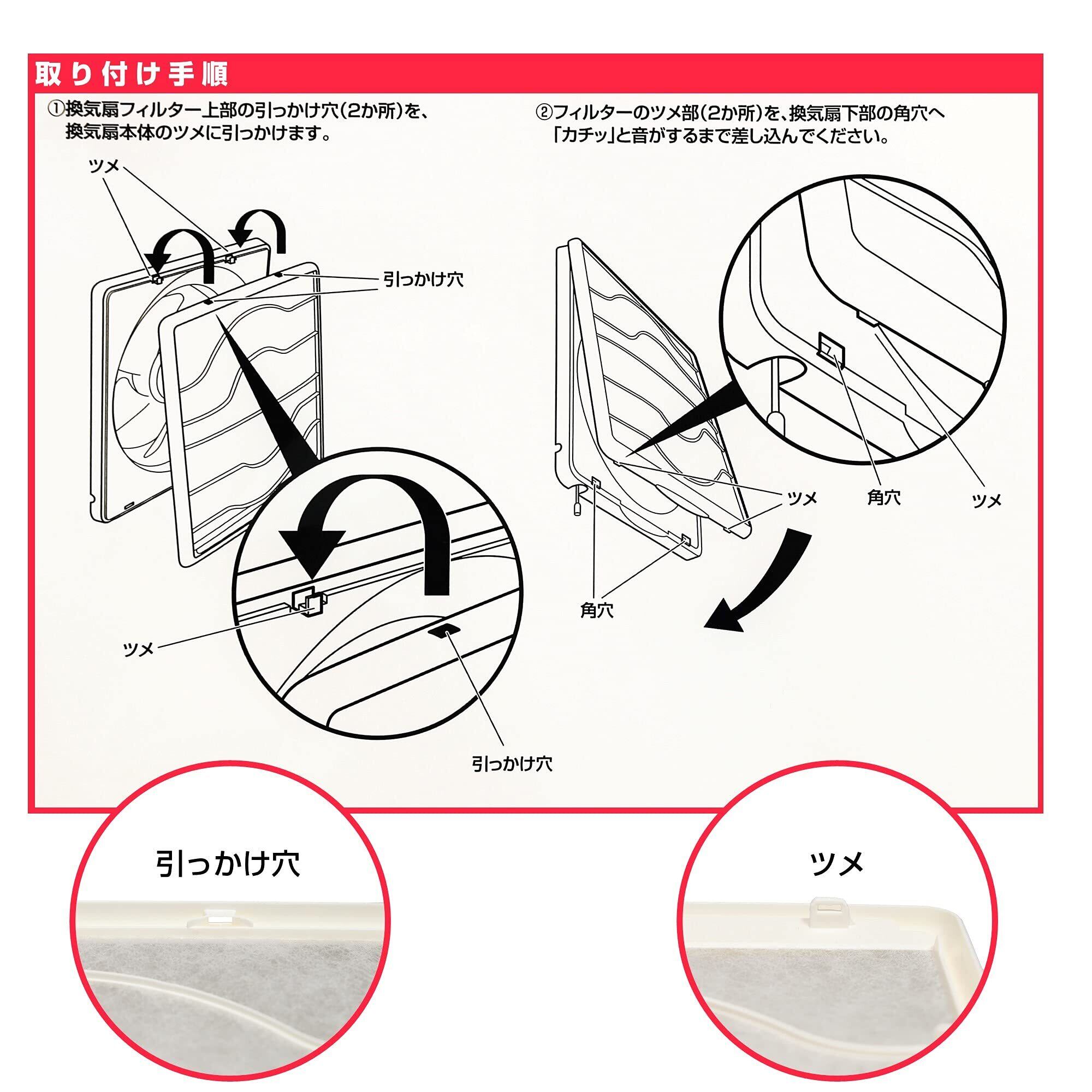 【ご注意】・対応機種をお確かめの上、ご使用ください。・取付け、取外しの際は、必ず換気扇を停止状態にしてください。・取付けは確実に行ってください。落下の原因となります。