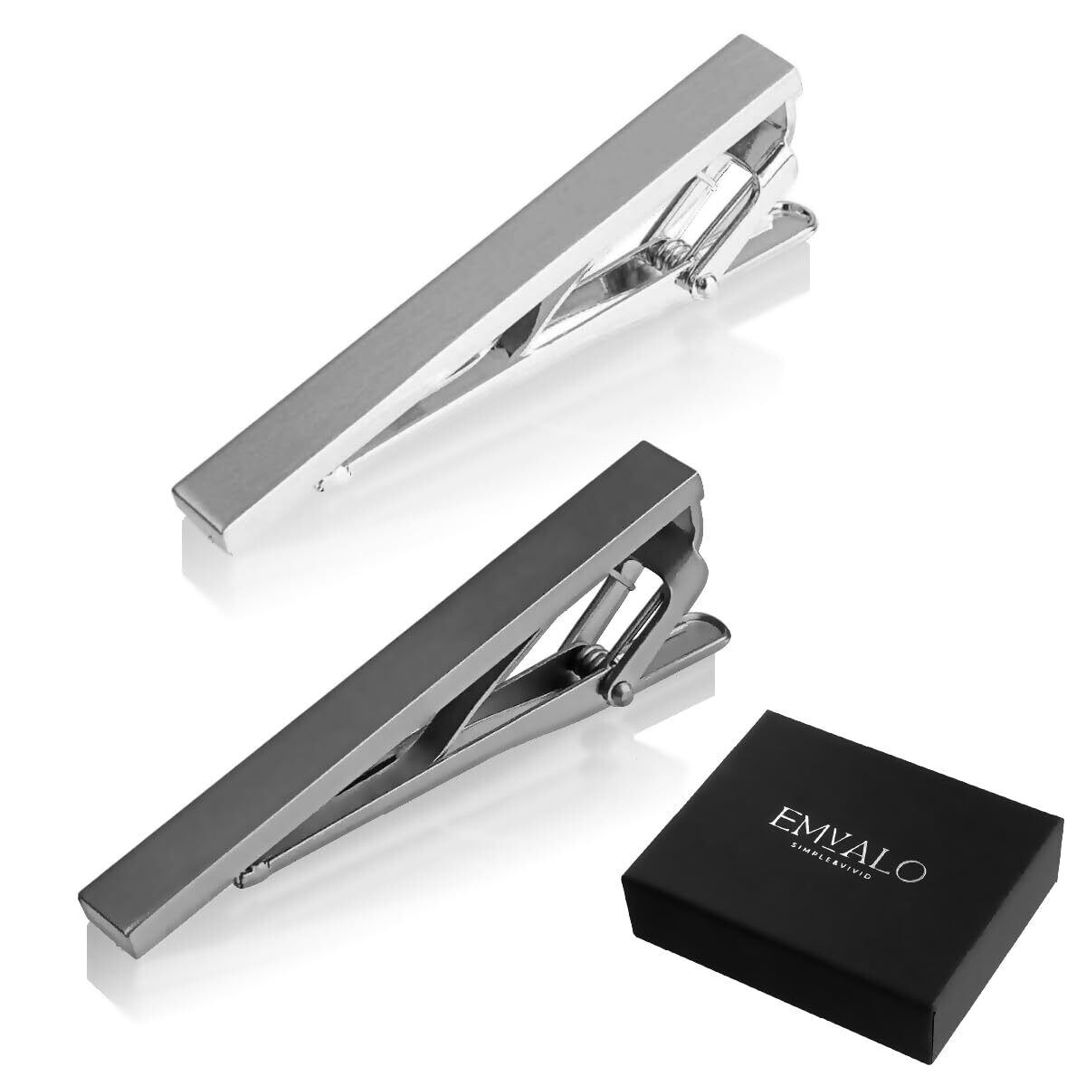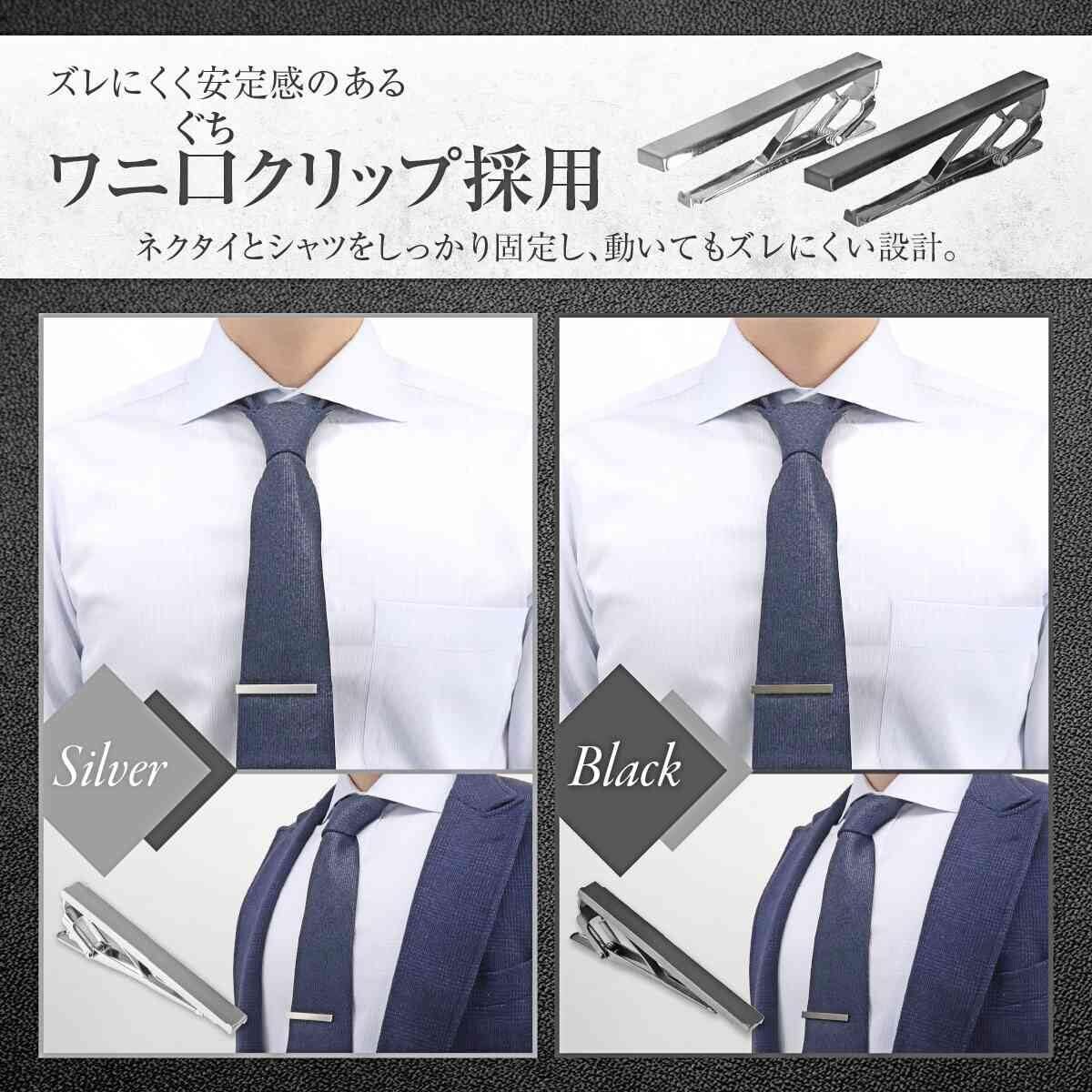 Emvalo 【日本製】 ネクタイピン 2本セット サテーナ加工シルバー&艶消しブラック ワニ口クリップ フォーマル