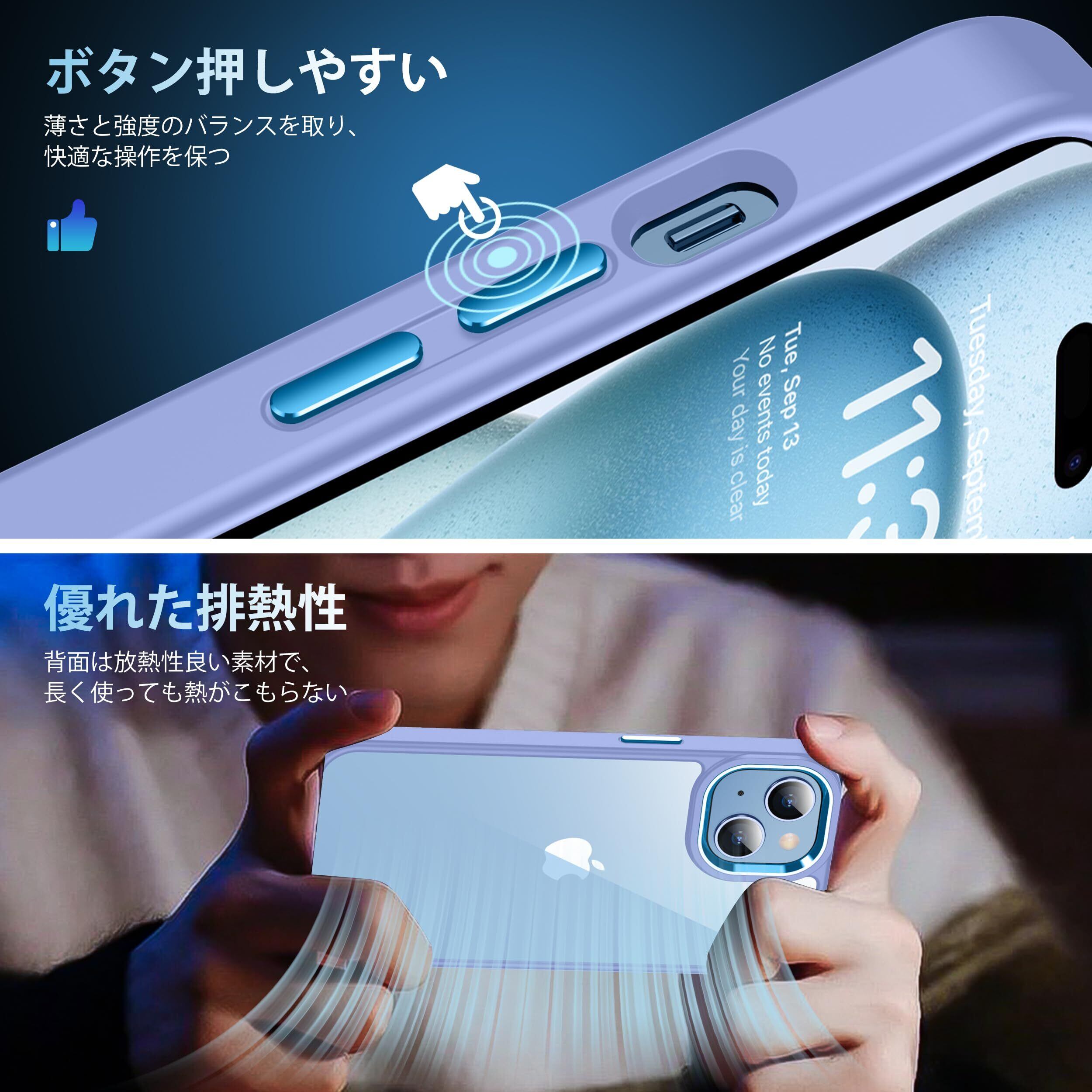 iPhone15 ケース ペールパープル 耐衝撃 カメラレンズ保護付き アイフォン15ケース 米軍MIL規格 耐久性 黄ばみ防止 アイホン15 ワイヤレス充電対応 あいほん15 SGS認証 スマホケース あいふぉん15 カバー 透明 6.1インチ XIWXI