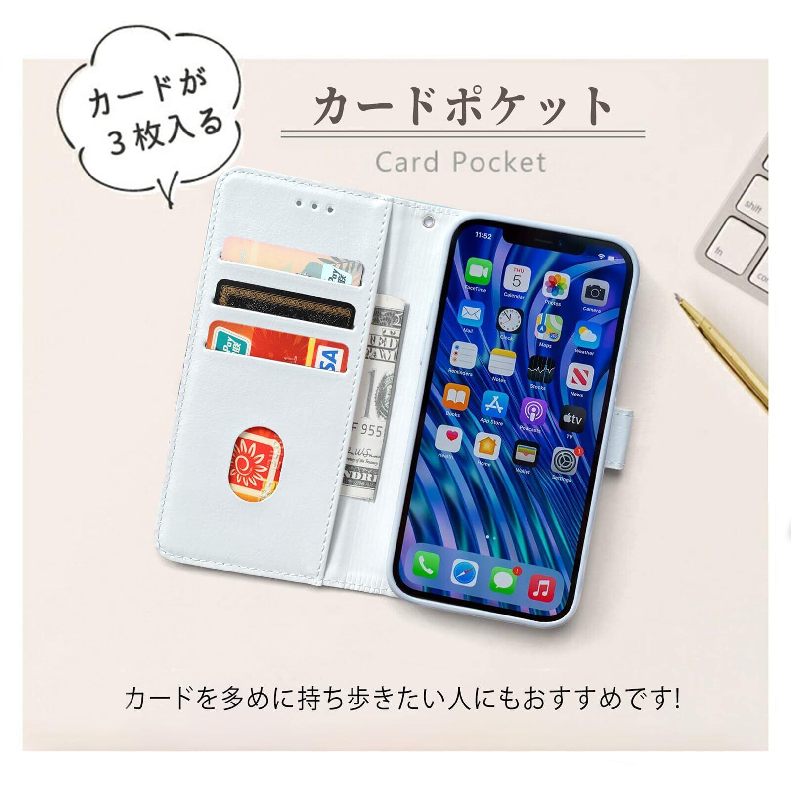 いphone14 ケース 手帳型 かわいい キャラクター iPhone14ケース手帳型 おしゃれ iPhone13 ケース 手帳型 可愛い PUレザー 手帳 手帳ケース カード収納 スタンド ハンドストラップ付き (iPhone13/14, 3)