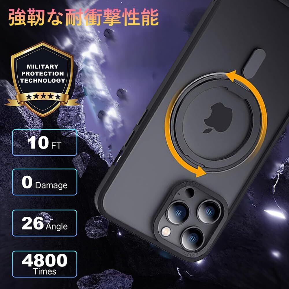 iPhone 13 Pro Max 用 ケース Magsafe対応 アイフォン13プロマックス カバー 360°回転スタンド Uovon スマホケース アイホン 13promax 携帯ケース ワイヤレス充電 ストラップ穴付き 車載ホルダー 対応 半透明 指紋防止 黄变防止 ・ ブラック | lcsshop