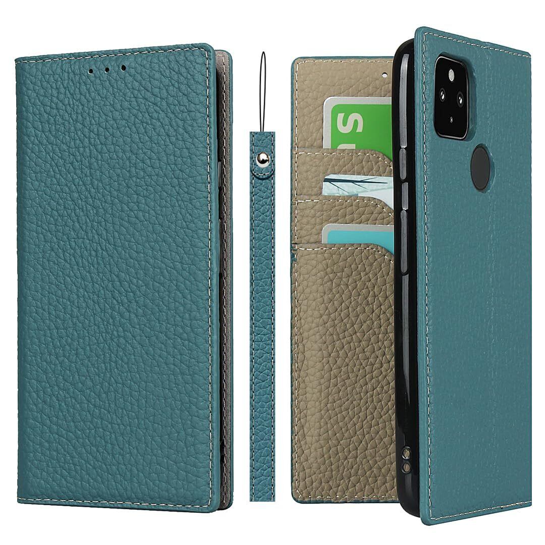 Havaya Google Pixel 4A 5G ケース ピクセル 4a 5g ケース 手帳型 docomo グーグル スマホケース 本革 au ストラップ 耐衝撃 カバー SoftBank カード収納 スタンド機能 レザー (6.2インチ)-スカイブルー