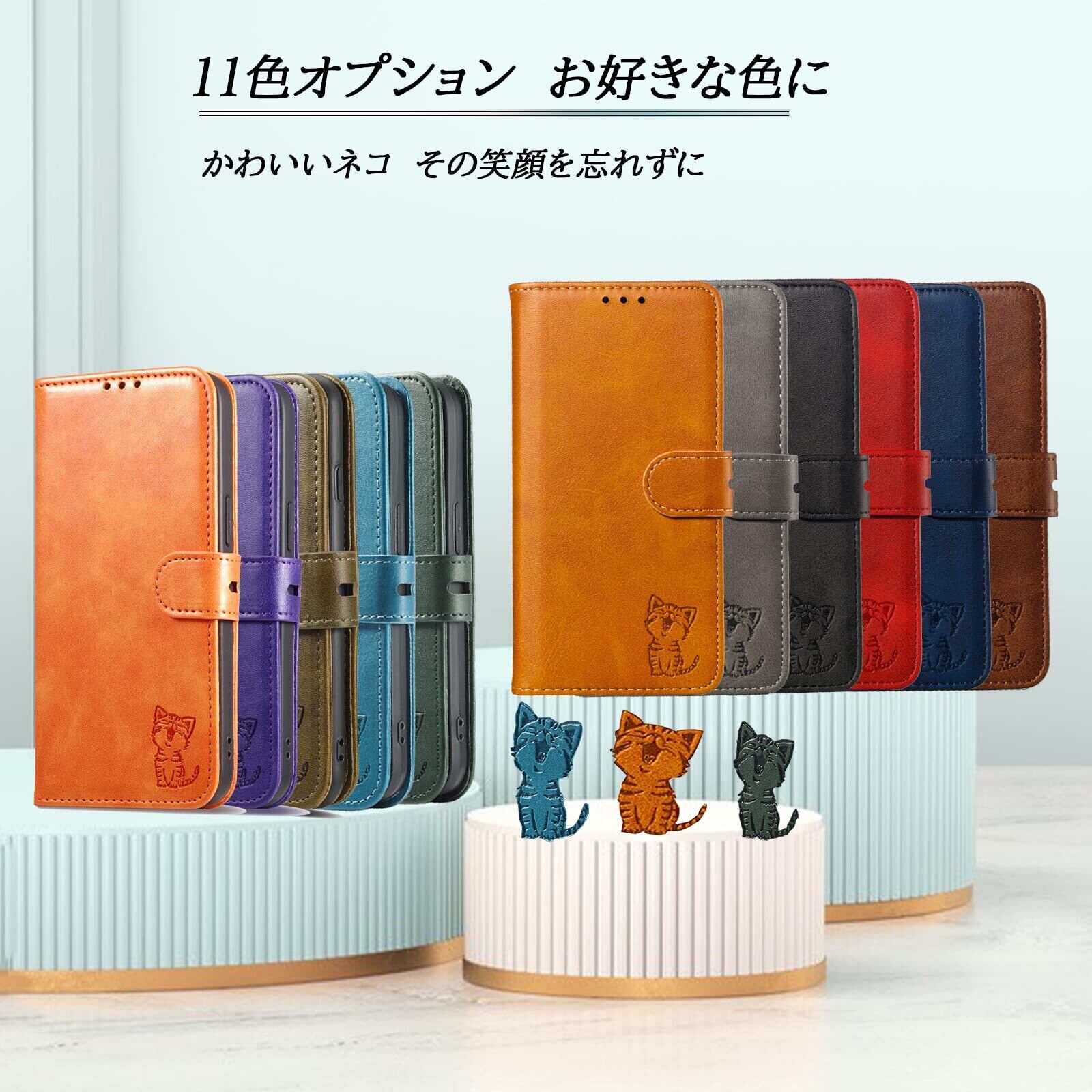Xiaomi Redmi 12 5G XIG03 ケース 手帳型 Redmi 12 5g XIG03 手帳型ケース スマホケース シャオミ レッドミ12 5G ケース 携帯ケース redmi12 case カバー PUレザー TPUケース ストラップ付き 財布型 ベルトマグネット スタンド機能 かわいい 笑顔猫柄 耐衝撃 汚れ防止 薄型 (Xiaomi Redmi 12 5G 対応) ブラウン
