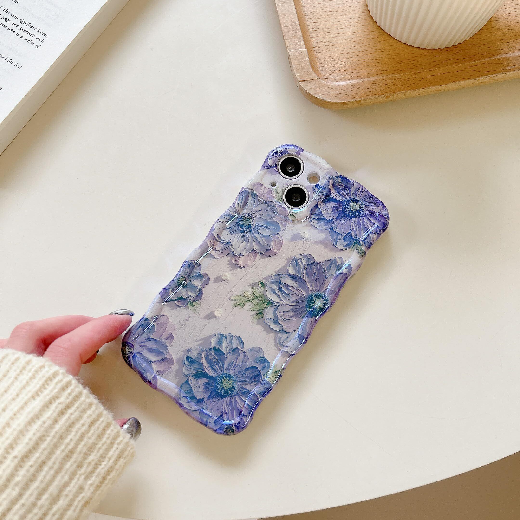 QLTYPRI iPhone 15ケースTPUカバー おしゃれ 韓国 可愛い 花柄 薄型 軽量 耐衝撃 スマホケース ワイヤレス充電対応 ストラップホール付き アイフォン15 ケース 6.1インチ 対応 - パープル | lcsshop