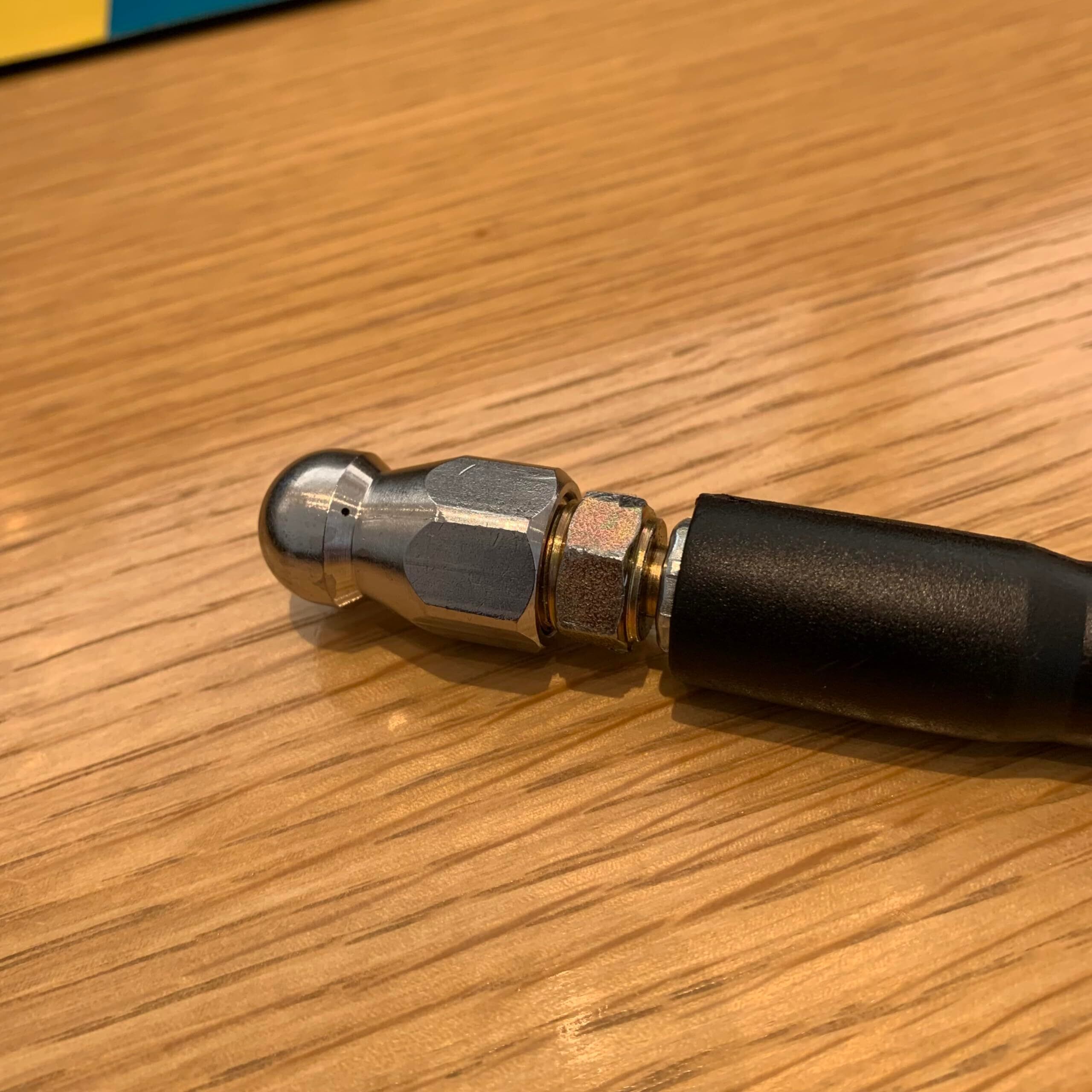 先端のノズル前方1箇所、後方3箇所から高圧水が逆噴射し、配管に沿って進み詰まりを解消します。